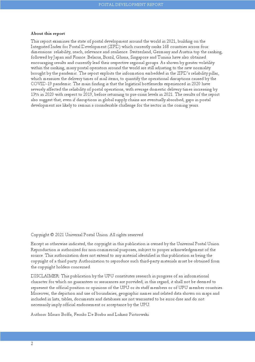 2IPD是世界各地邮政发展的比较指标。这是一个综合指数,是分析邮政行业状况的独特工具。由于其广泛的地理覆盖面和基础数据的深度,该指数吸引了众多利益相关者,从政策制定者和监管机构到邮政运营商和更广泛的邮政行业参与者。