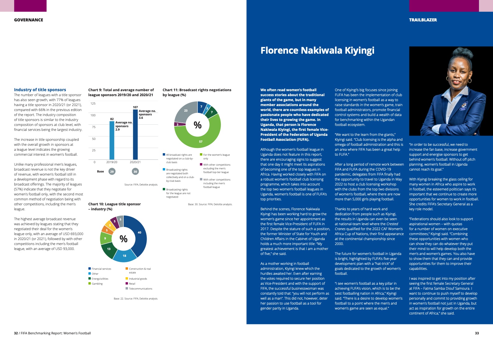 国际足联女足首席官员萨莱伊·巴雷曼说:“这份报告证明那些愿意给女子足球投资的人是能够得到回报的,我们期望今年的报告能够让更多人认识到女子足球的发展前景和机遇。”
