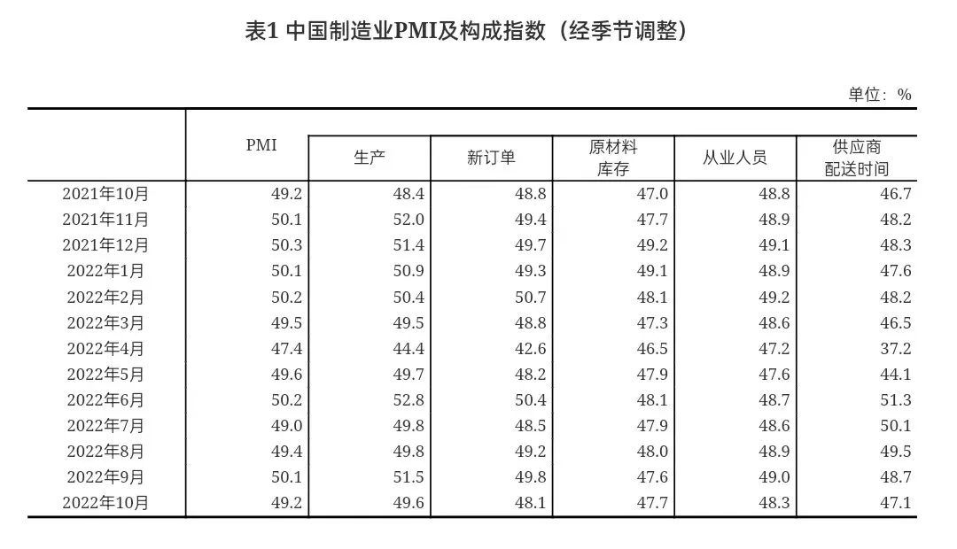 10月份,制造业采购经理指数(PMI)为49.2%,比上月下降0.9个百分点,低于临界点。