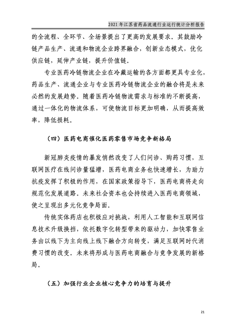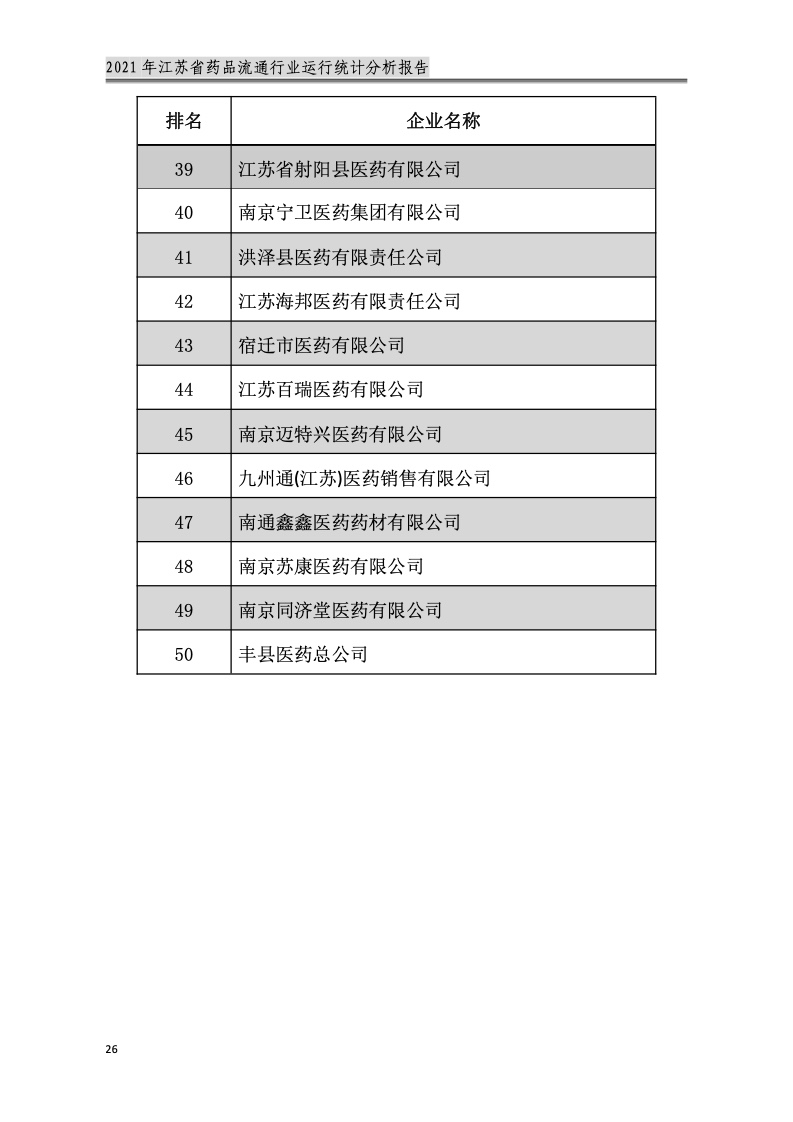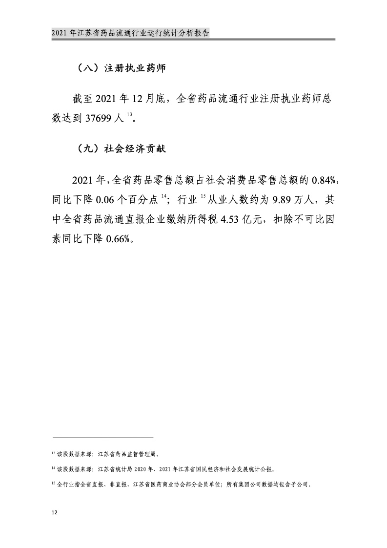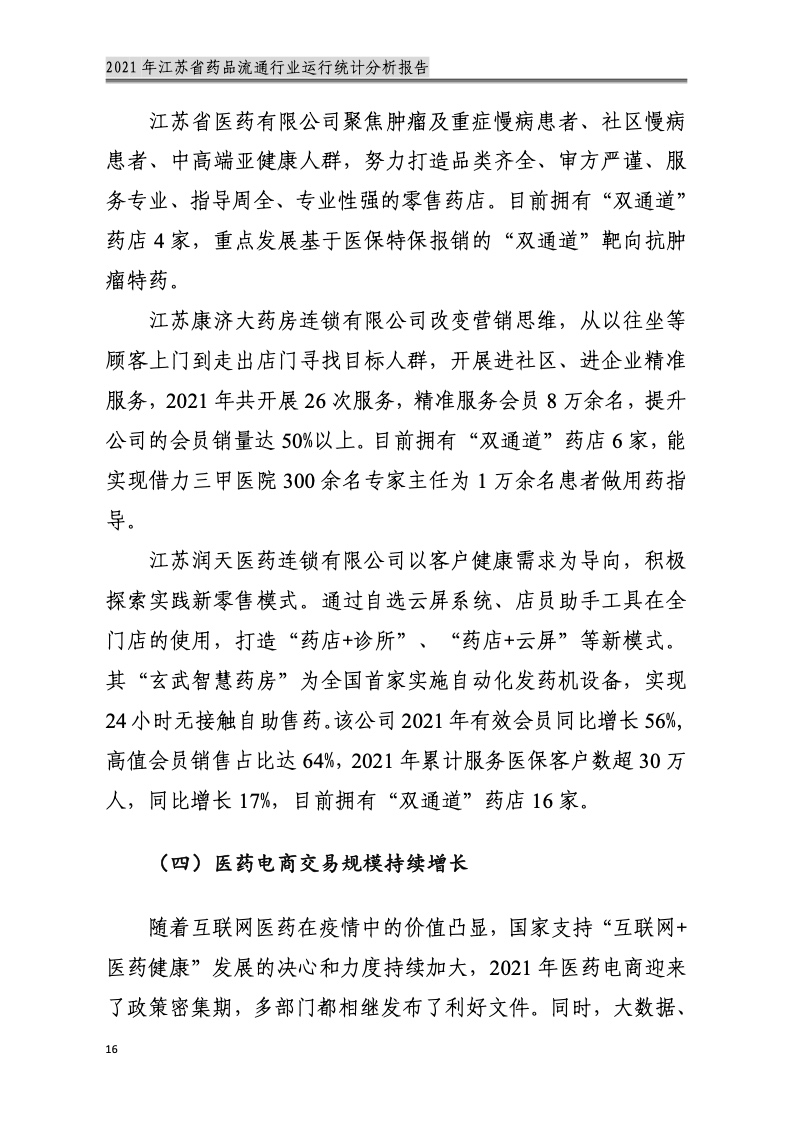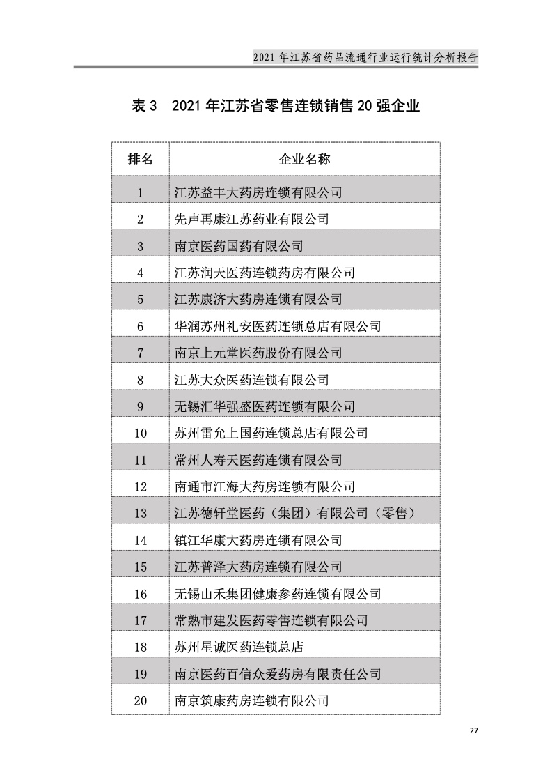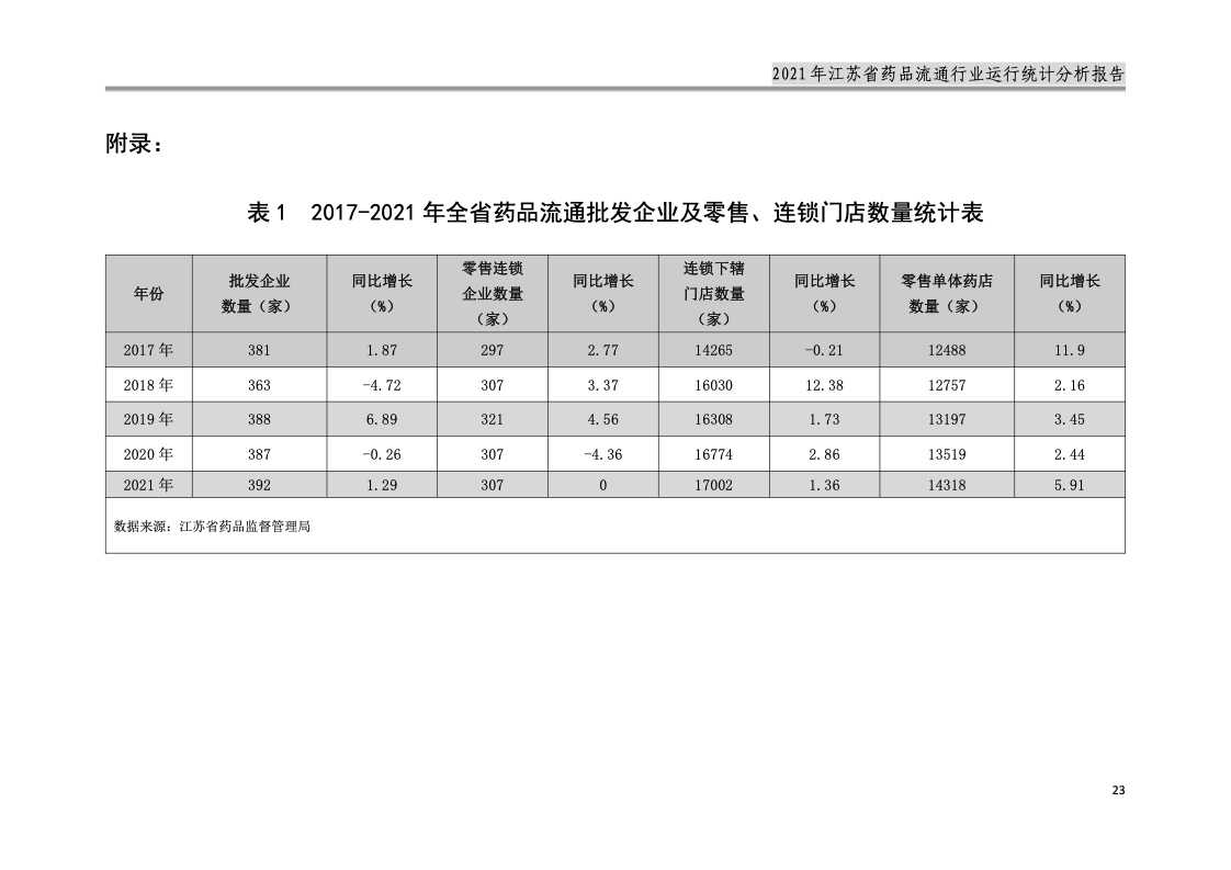 截至 2021 年末,全省共有药品批发企业 392 家,其中法人 批发企业 378 家,非法人企业 14 家;药品零售连锁企业 307 家、 下辖门店 17002 家,零售单体药店 14318 家,零售药店门店总 数 31320 家。