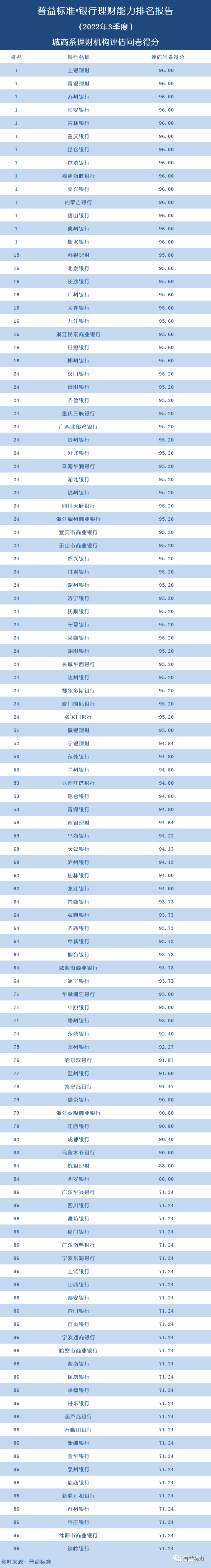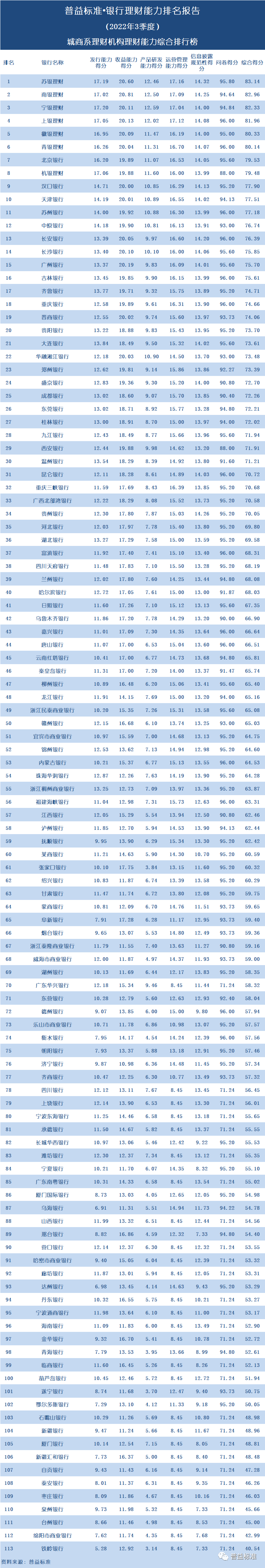 - 城商系理财机构排名前十的依次为苏银理财、南银理财、宁银理财、上银理财、徽银理财、青银理财、北京银行、杭银理财、汉口银行、天津银行;