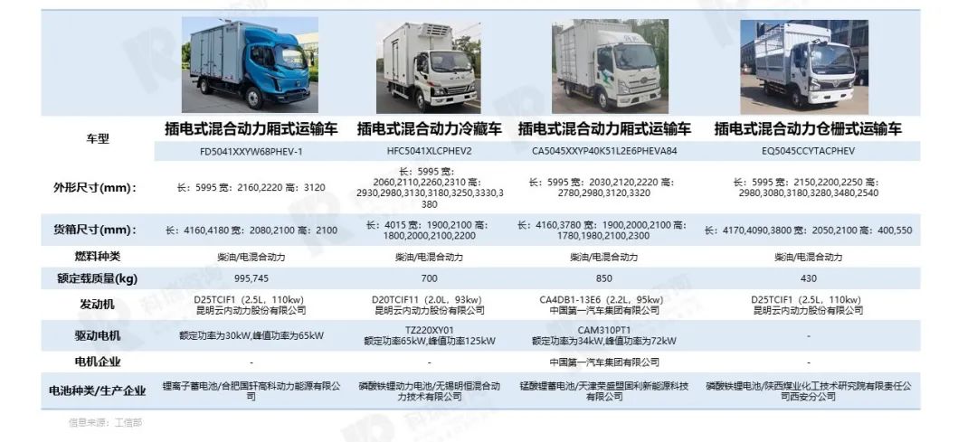 - 第363批公告公示中,出现多款插电式混合动力轻卡。在新能源商用车逐渐从政策推动向市场推动转变的背景下,企业积极布局多种技术路线,满足不同市场需求,特别是冷藏车,既解决了纯电续航的痛点也解决了燃料电池的高成本痛点。