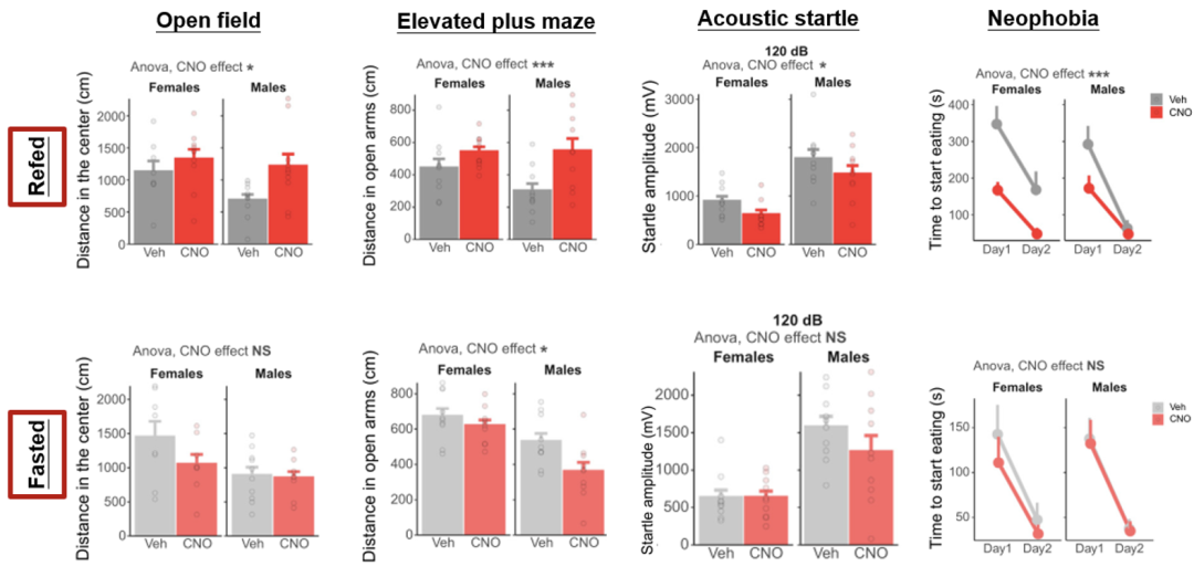 上述结果表明,进食状态可调节类焦虑行为,自由进食增加了雄性和雌性大鼠的类焦虑行为,并且与运动或饥饿的变化无关。