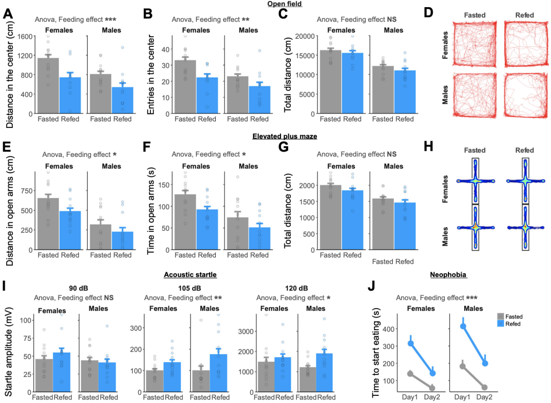 与禁食相比,自由进食增加了雄性和雌性大鼠的类焦虑行为