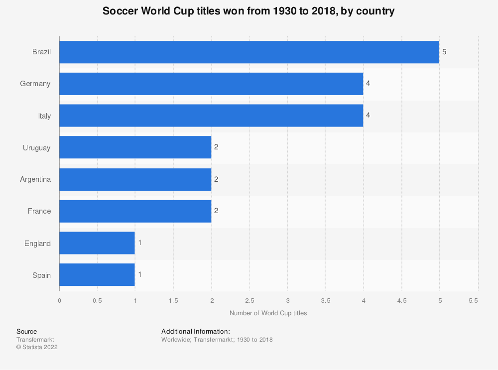 巴西国家队曾五次赢得世界杯冠军,分别在1958年、1962年、1970年、1994年和最近的2002年赢得了世界杯冠军。