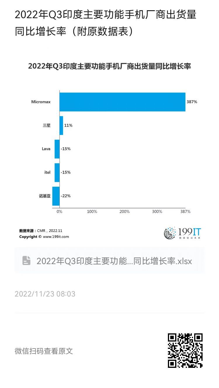 - 2022年Q3印度主要功能手机厂商出货量市场份额(附原数据表)