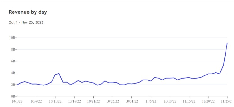 黑色星期五假期后公布的数据显示,消费者的消费意愿并未因通胀上升而受到抑制。据报道,虽然购物中心的流量可能比预期的要少,但线上购物的流量仍然强劲。根据 AdobeAnalytics 的数据,美国消费者在黑色星期五的在线销售支出达到创纪录的 91.2 亿美元。