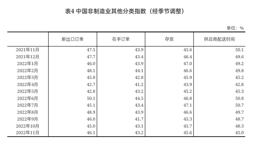 供应商配送时间指数为46.7%,比上月下降0.4个百分点,表明制造业原材料供应商交货时间有所放慢。