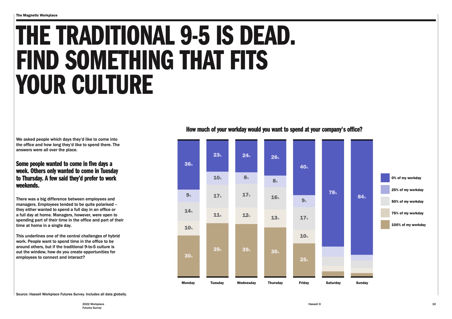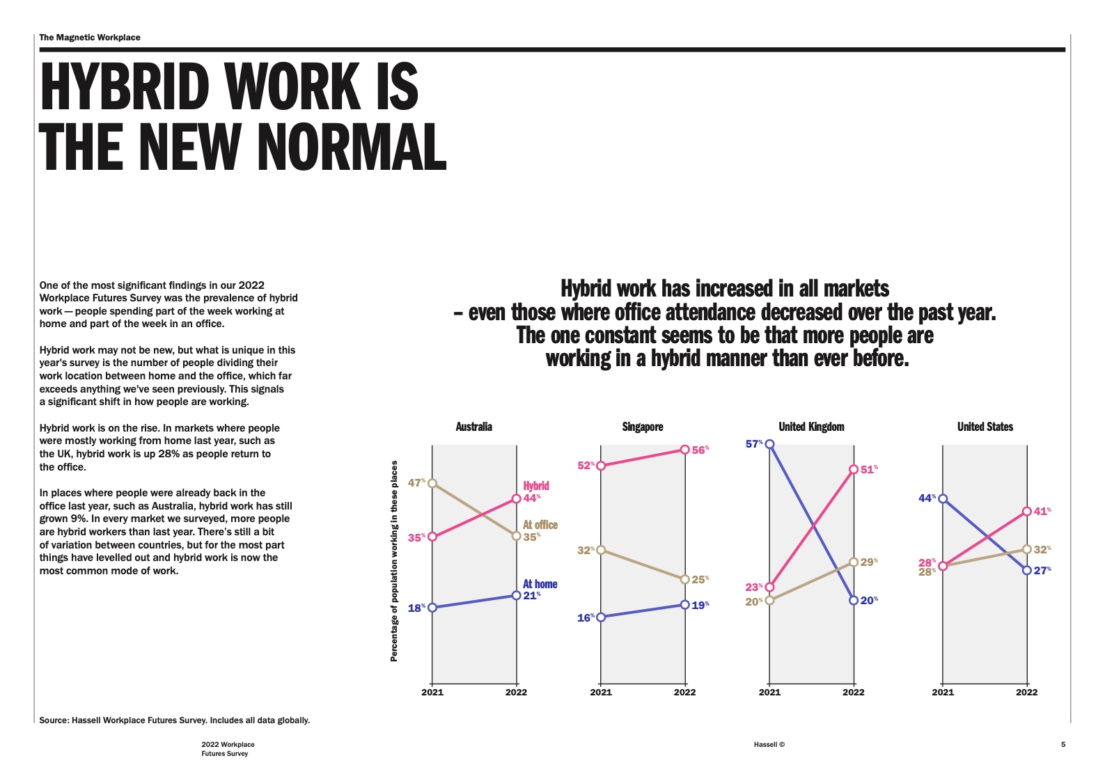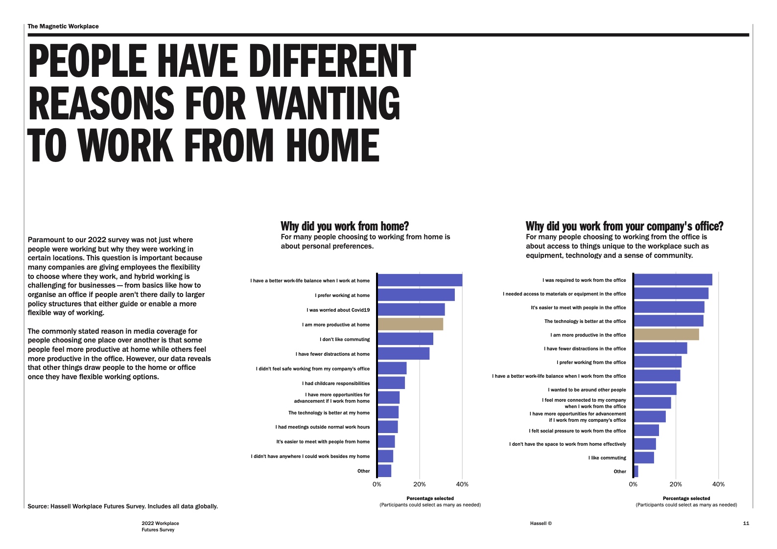 混合办公模式成为了新常态。在我们开展调研的国家,越来越多的人的工作日都分成了家里和办公室。这虽然不是一个新的趋势,但这么做的职场人士越来越多了,这也揭示了人们想要自由选择在哪里工作意愿的强烈。