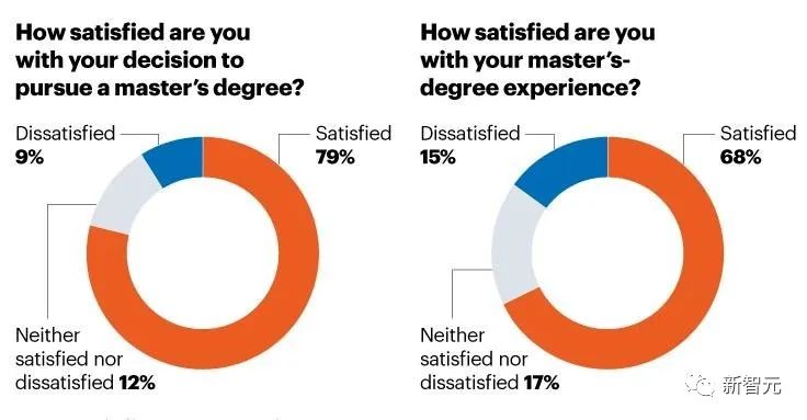 此外,79%的硕士生表示,他们对自己攻读研究生学位的决定也很满意,而博士生的这一比例为74%。