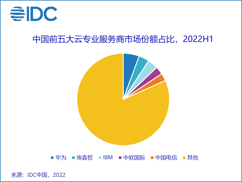 IDC最新发布的《中国云专业服务市场(2022上半年)跟踪》报告显示,2022上半年,中国整体云专业服务市场规模为116.7亿元人民币,同比增速为17.9%。