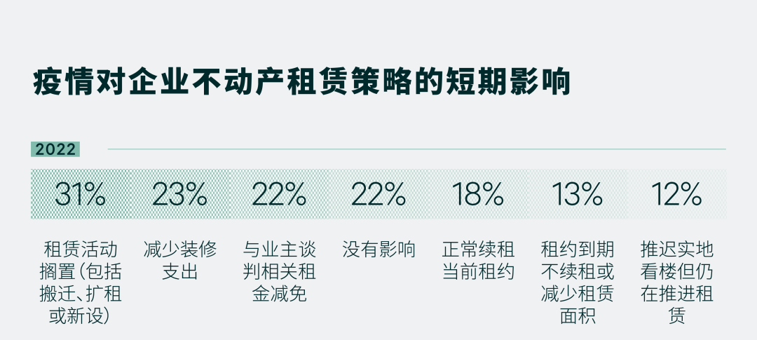 奥密克戎疫情使企业年内营业收入受到不同程度影响,但仍有35%的受访企业预计将在2023年增加办公面积。