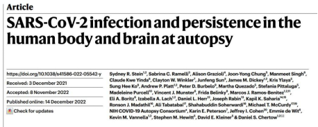 Sydney R Stein, et al. SARS-CoV-2 infection and persistence in the human body and brain at autopsy. Nature. 2022, 612(7941): 758-763. doi: 10.1038/s41586-022-05542-y.
