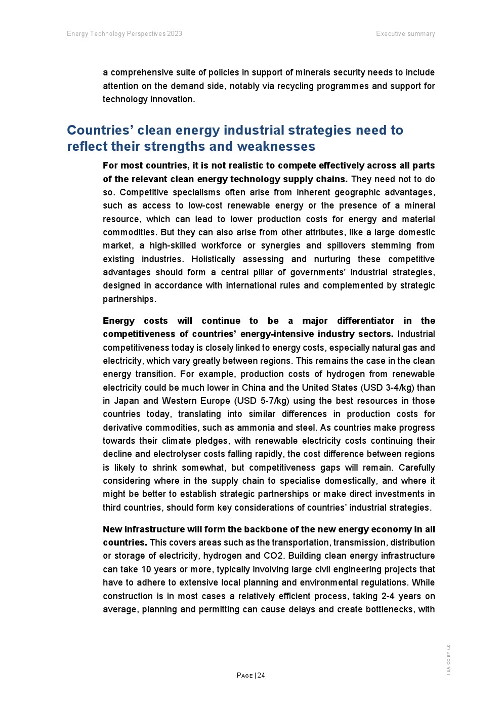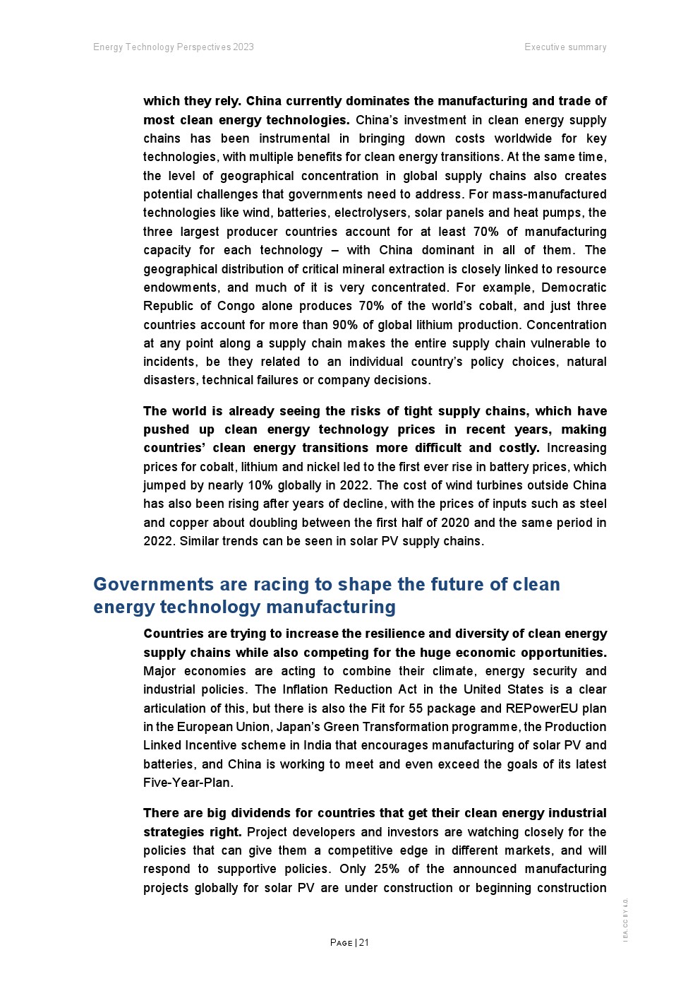 世界已经看到供应链紧张的风险,这些风险近年来推高了清洁能源技术的价格,使各国的清洁能源转型更加困难和昂贵。 钴、锂和镍的价格上涨导致电动汽车电池价格上涨,2022 年全球价格上涨近 10%。中国以外的风力涡轮机成本在多年下降后也一直在上升,太阳能光伏也有类似的趋势。