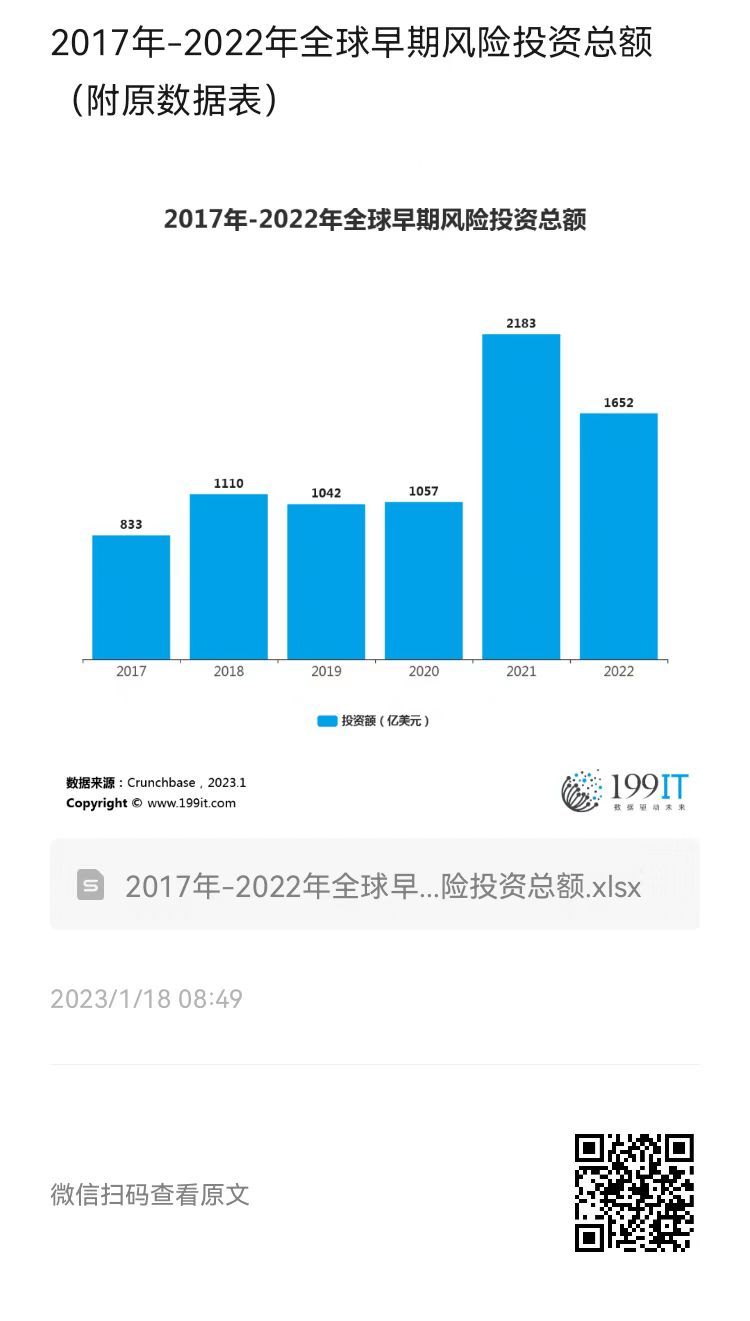 2017年-2022年全球早期风险投资总额(附原数据表) ​​​​