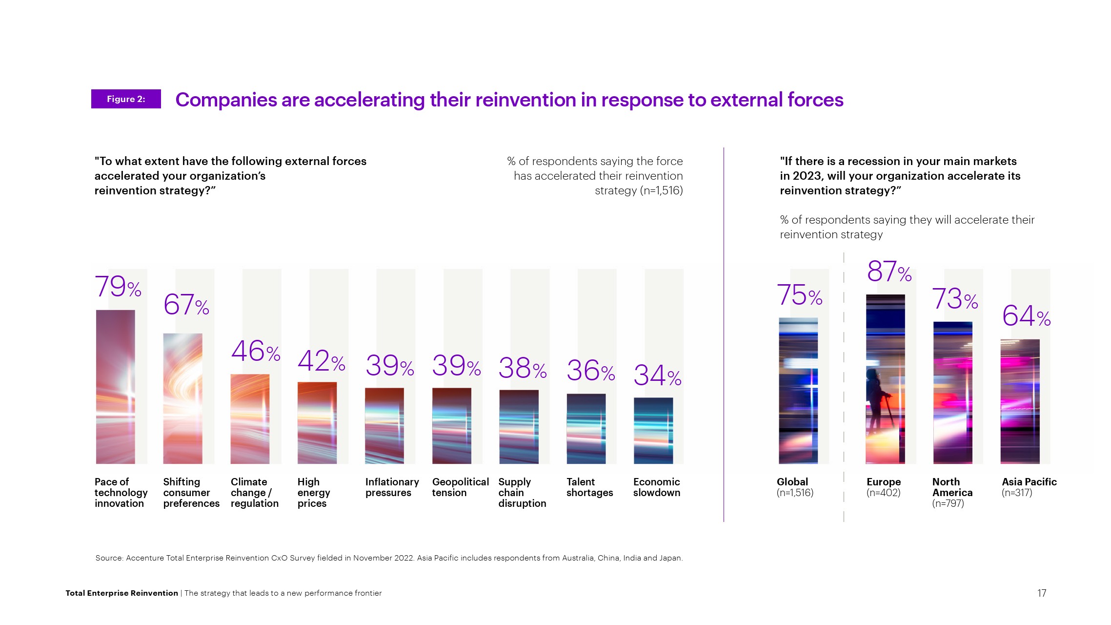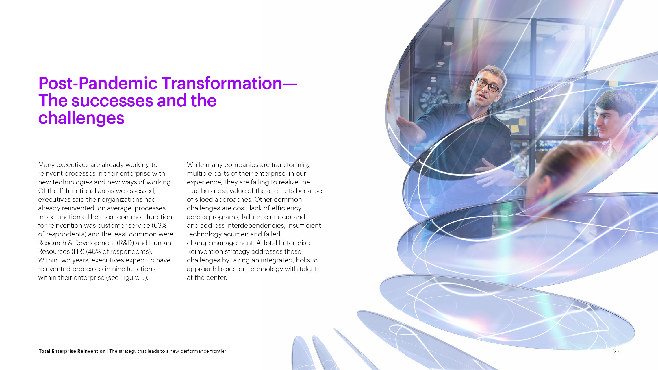 埃森哲发布了新报告“全面的企业重塑”。最新研究发现,为了在当今多变的环境中发展和领先,一小部分公司正在采用新技术和新工作方式对其业务的每个部分进行审慎、持续的全面企业重塑战略。