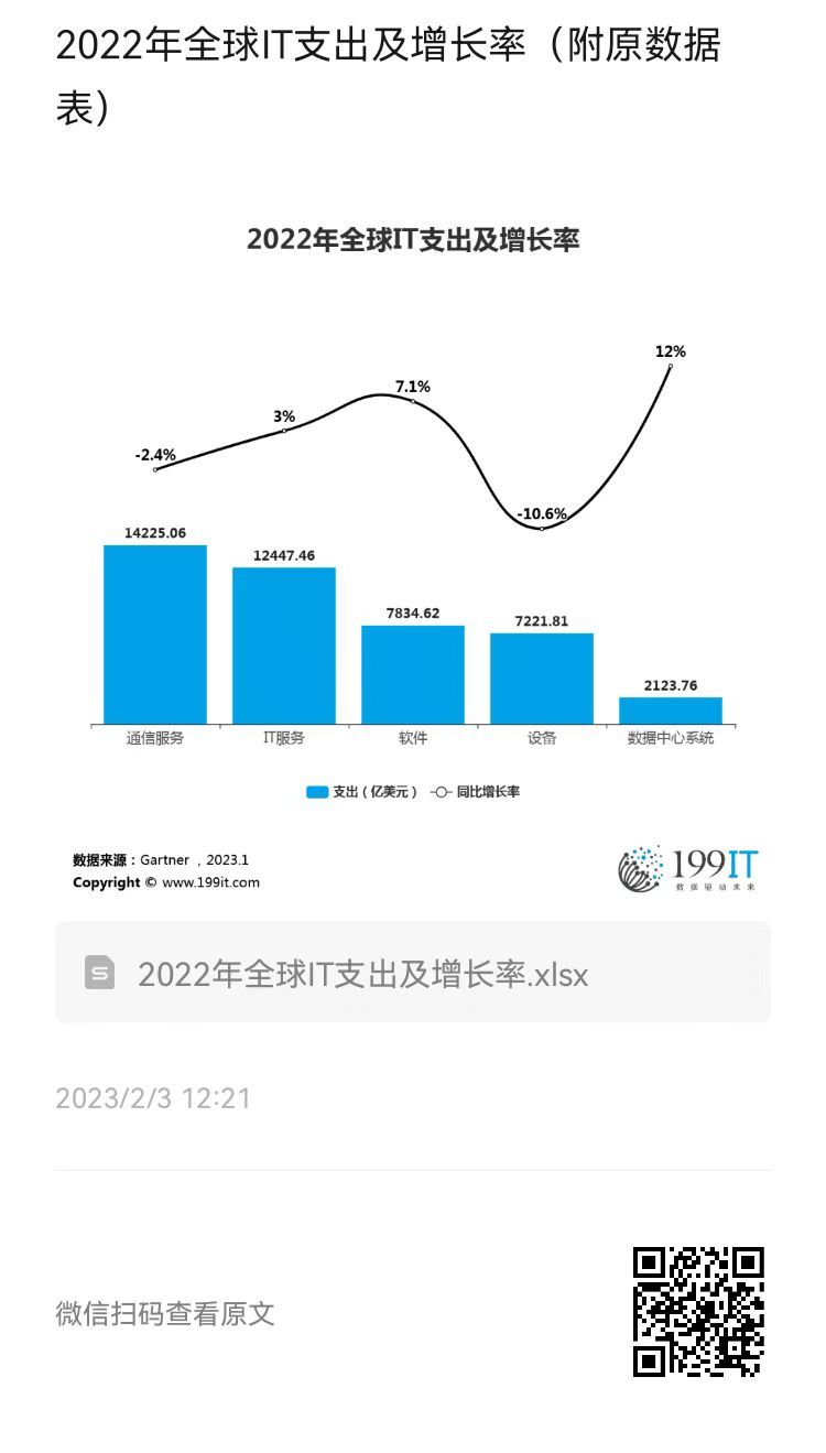 - 2022年全球IT支出及增长率预测(附原数据表)