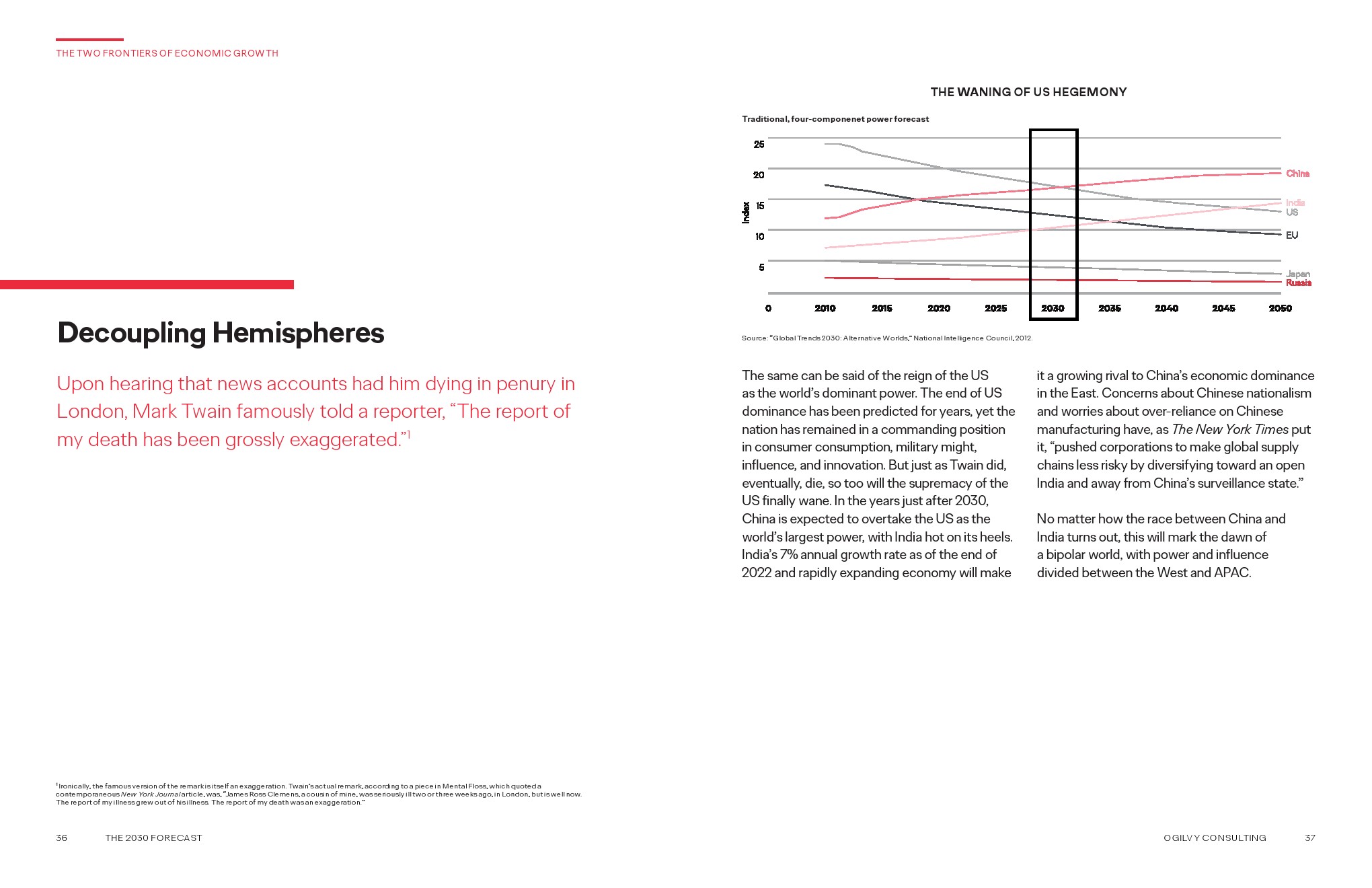 但当我们展望 2023 年至 2030 年时,我们意识到这几年将对人类至关重要,因为我们面临着需要解决的新问题,并通过创新来解决这些问题。Ogilvy Consulting 通过这份报告勇敢地向您展示我们对 2030 年世界将走向何方的看法。