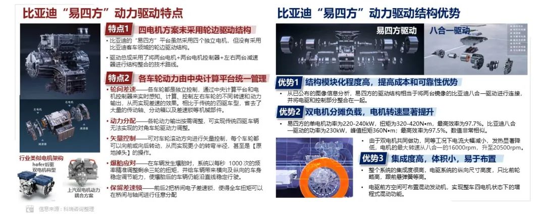 比亚迪易四方动力采用双电机电驱桥相似的架构,实现了四轮独立驱动。