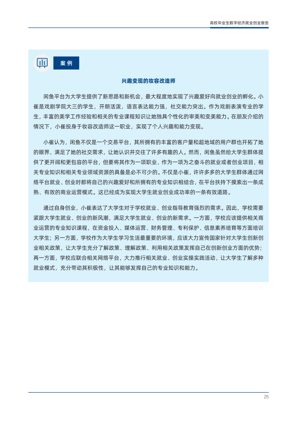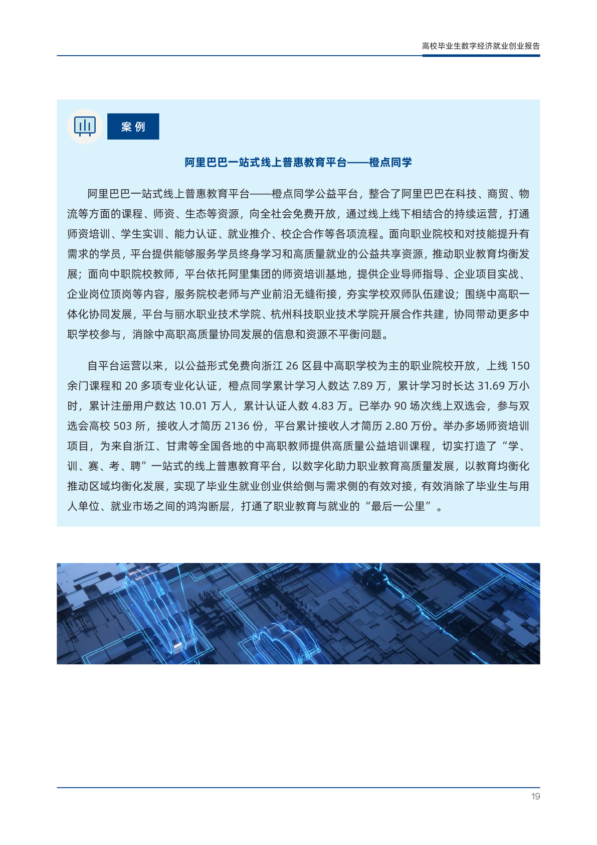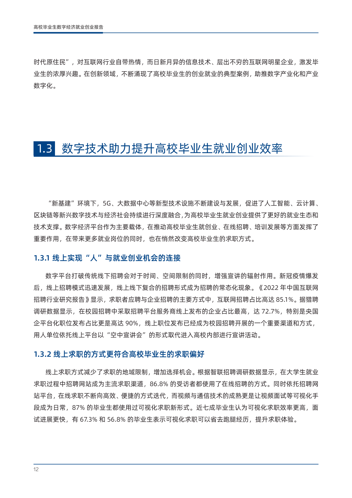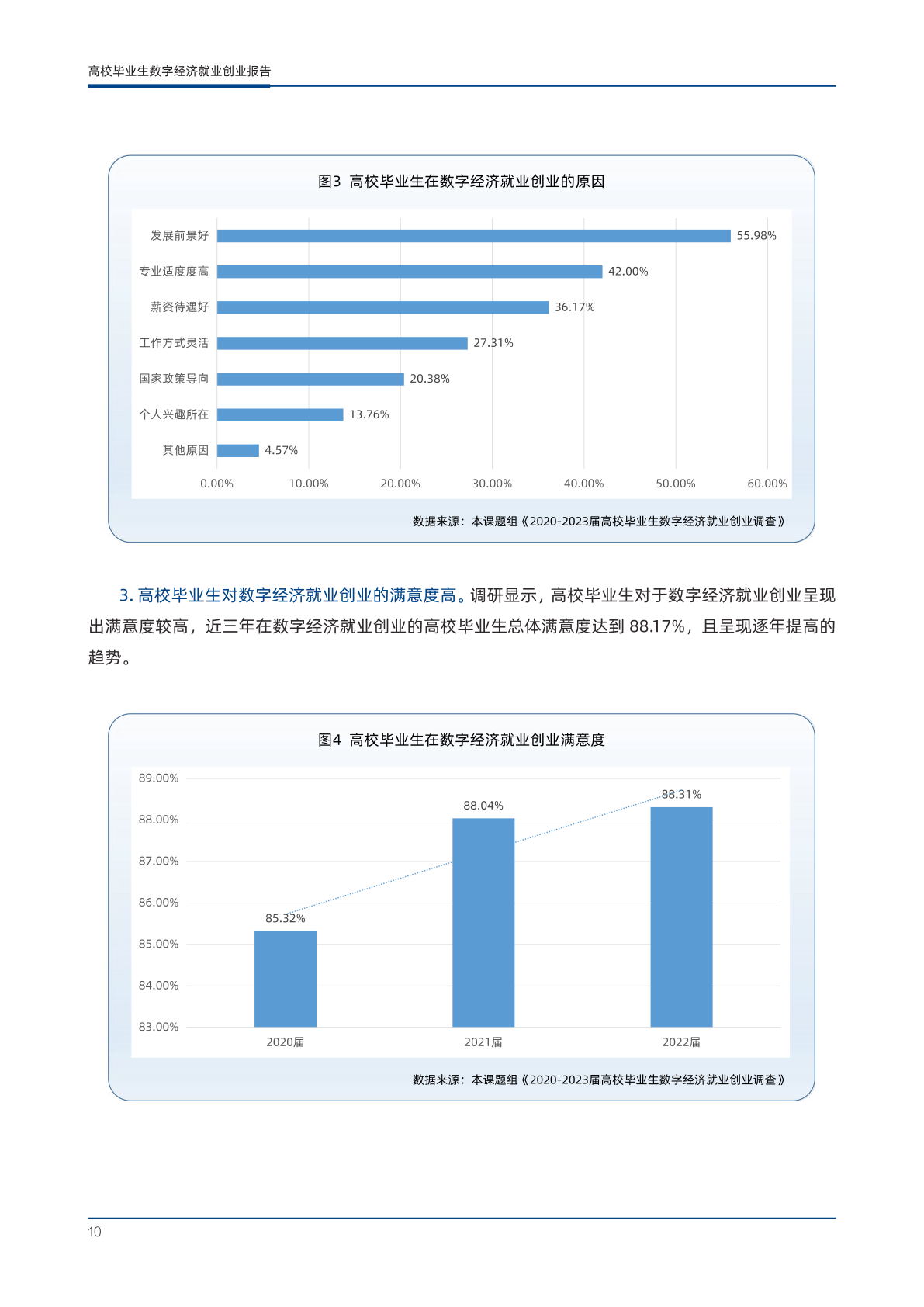 报告指出,数字经济平台在提供新增就业岗位、优化就业结构上发挥了重要作用,已成为高校毕业生就业创业重要渠道。