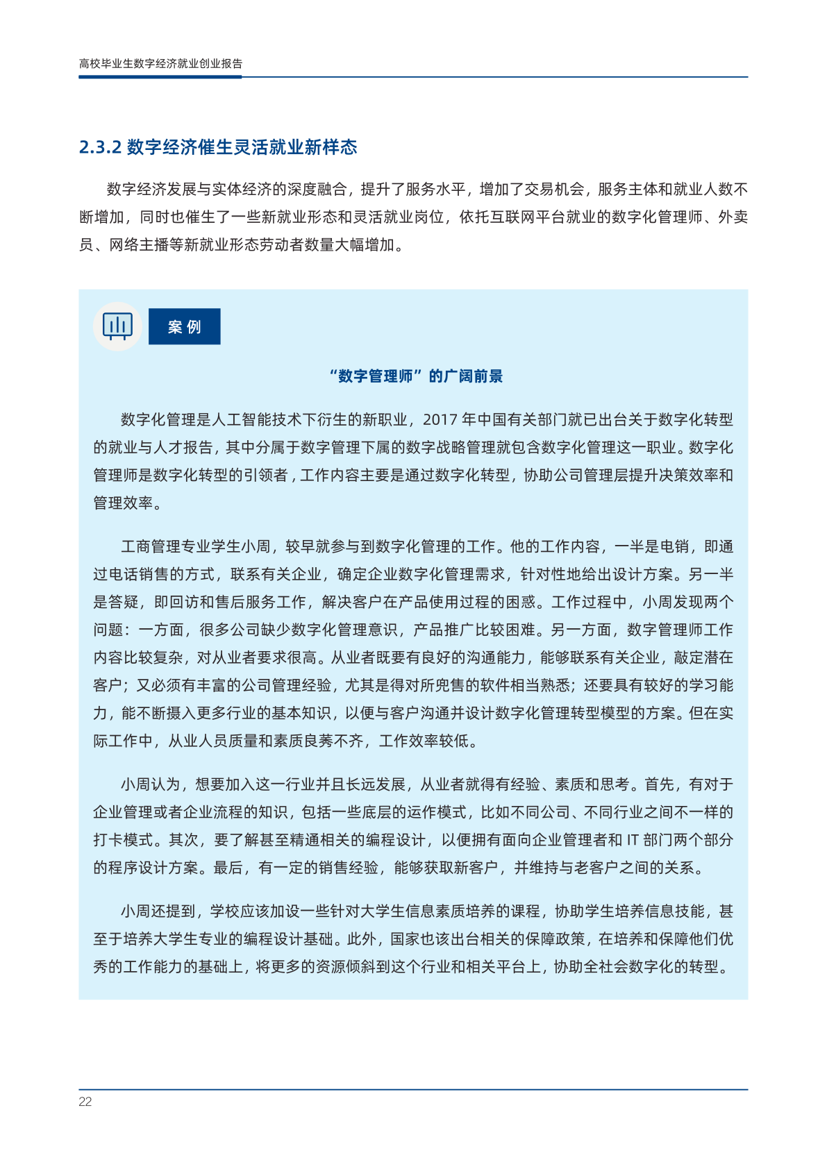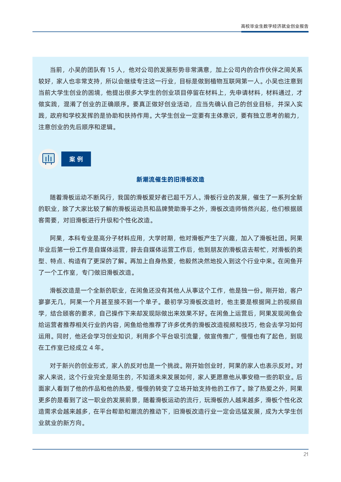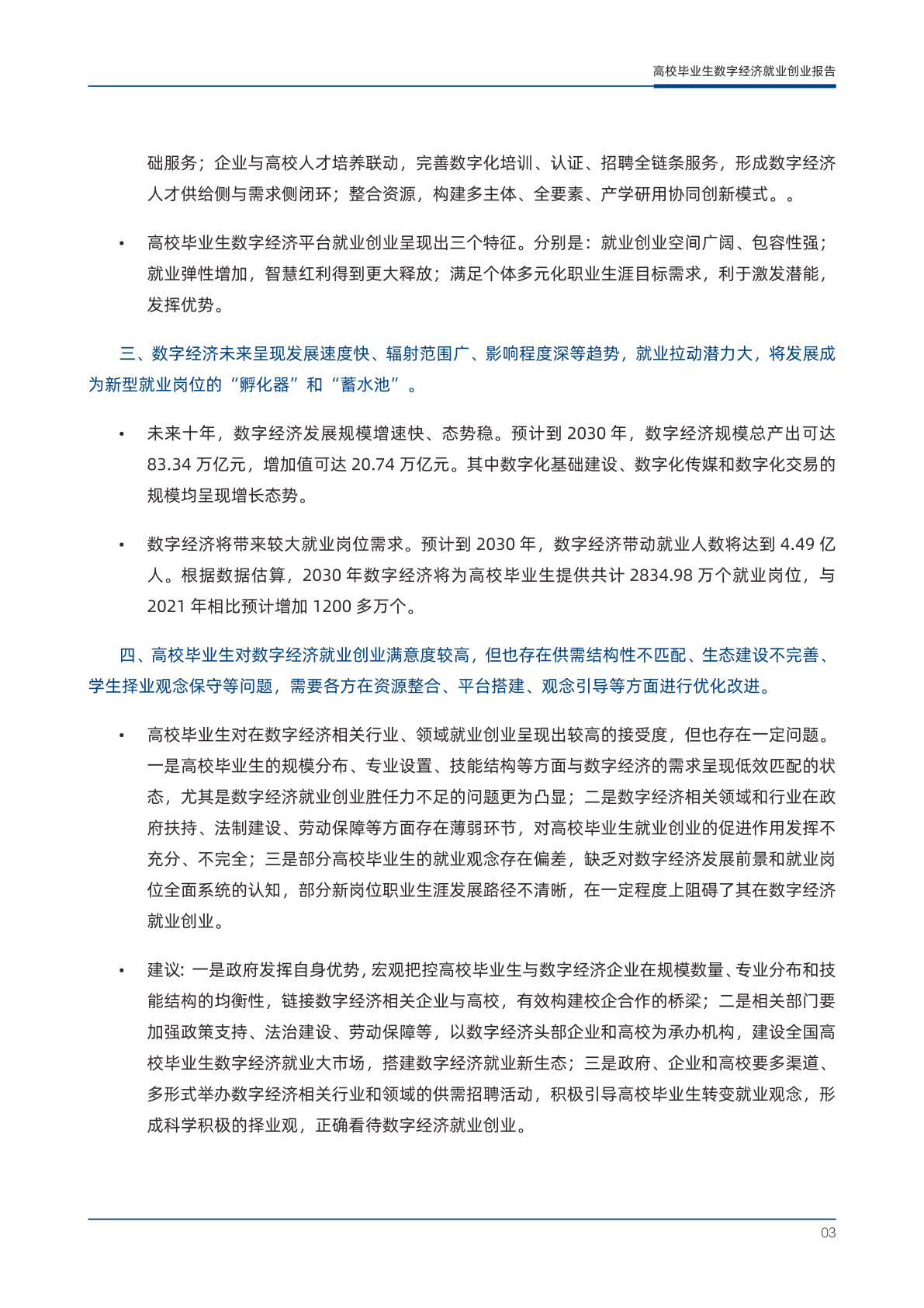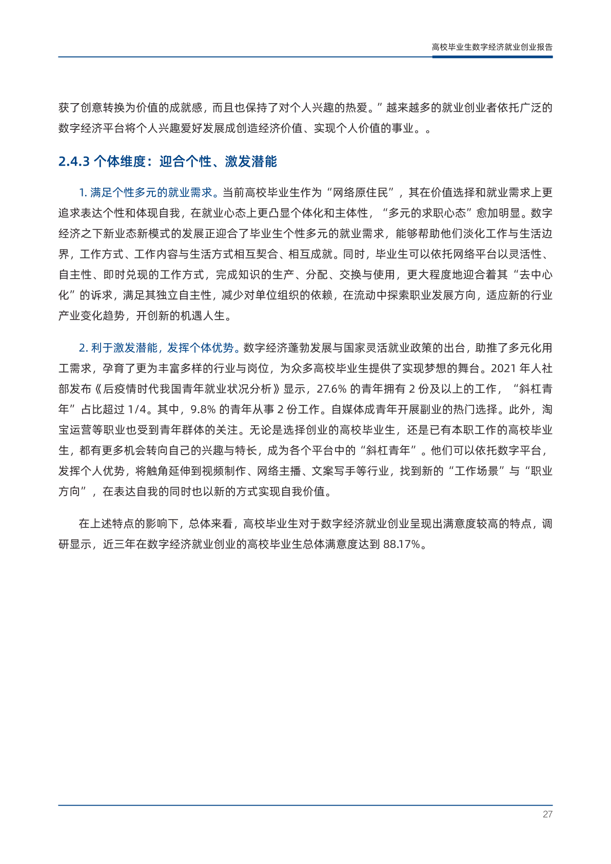 报告指出,数字经济平台在提供新增就业岗位、优化就业结构上发挥了重要作用,已成为高校毕业生就业创业重要渠道。