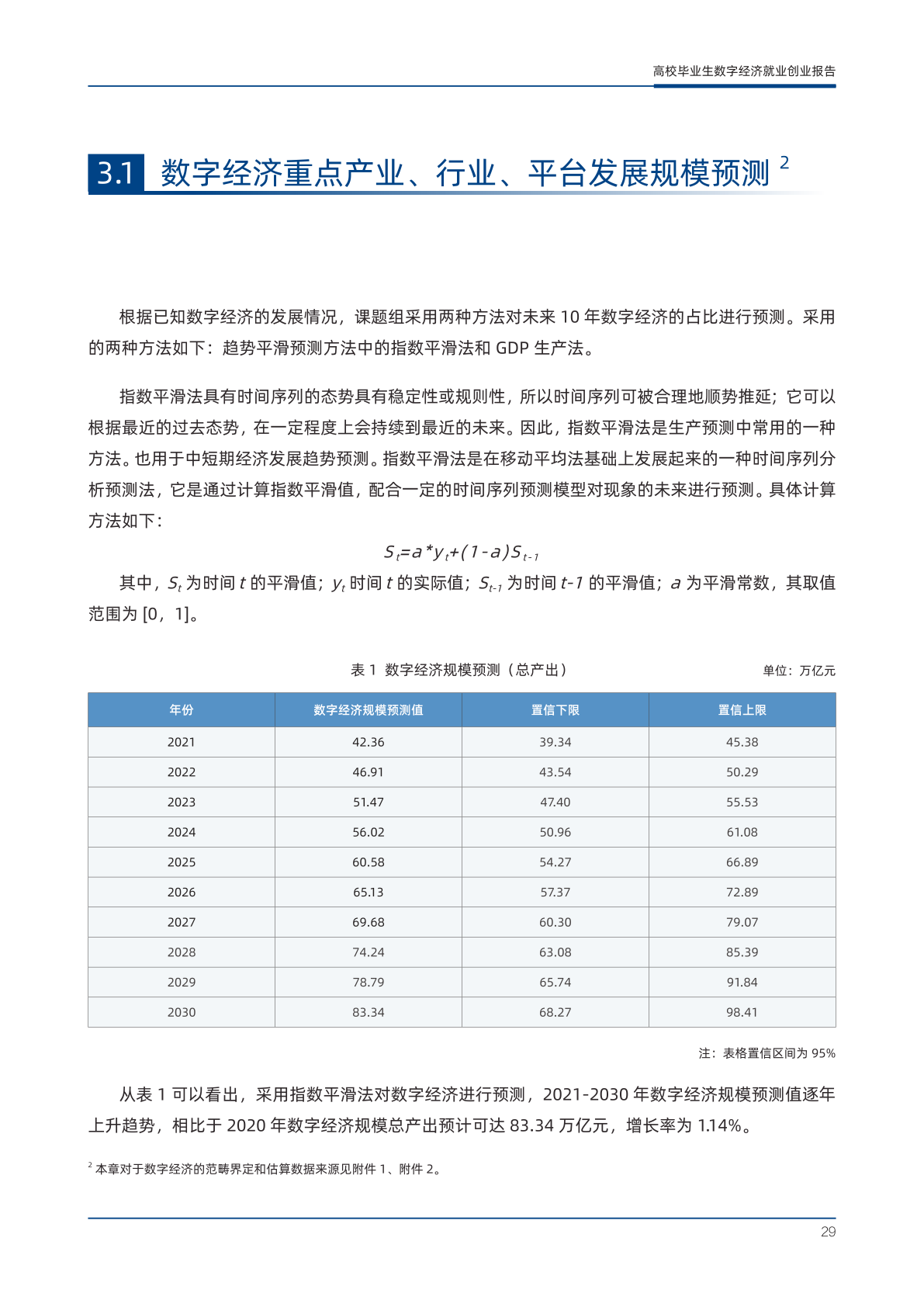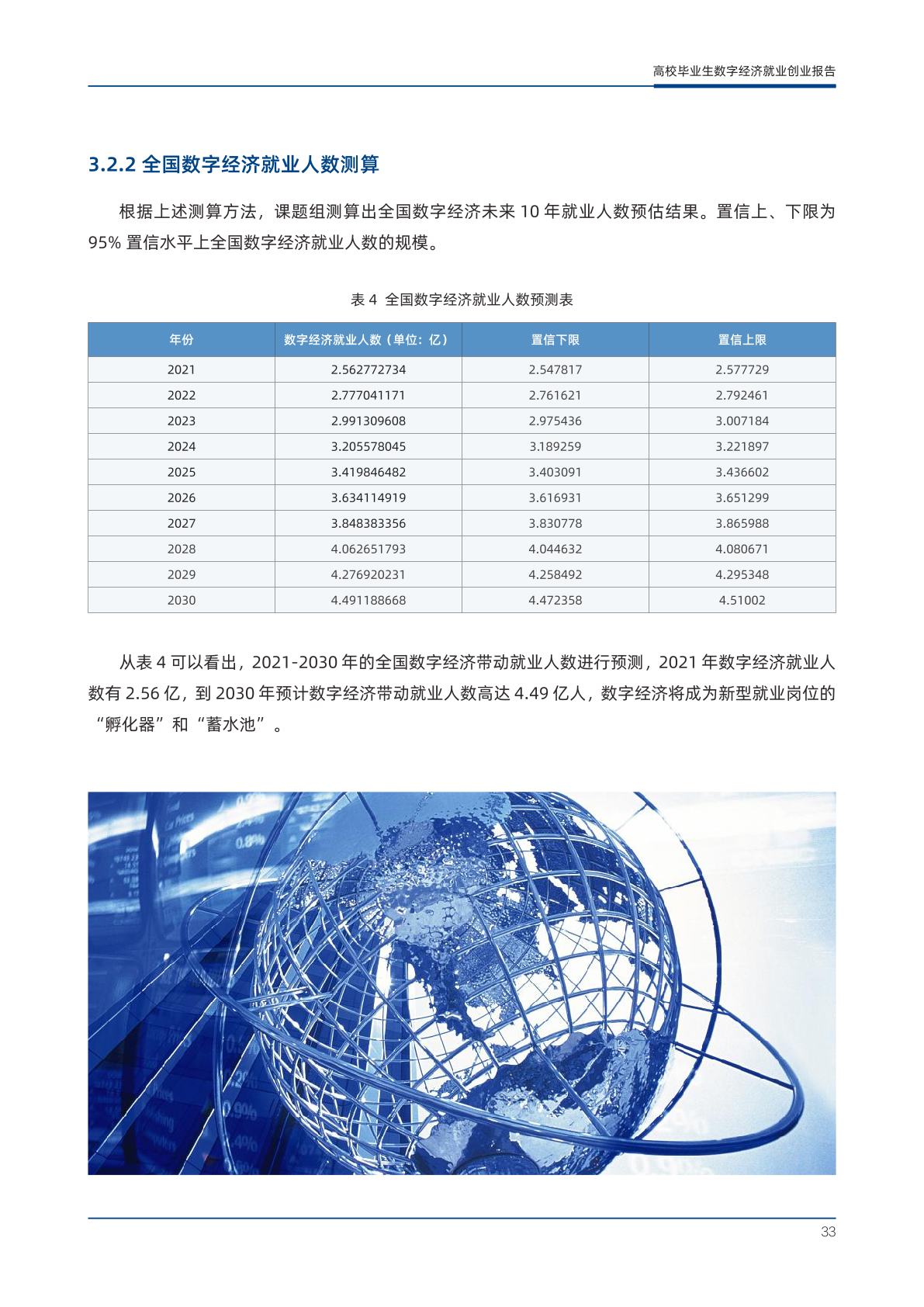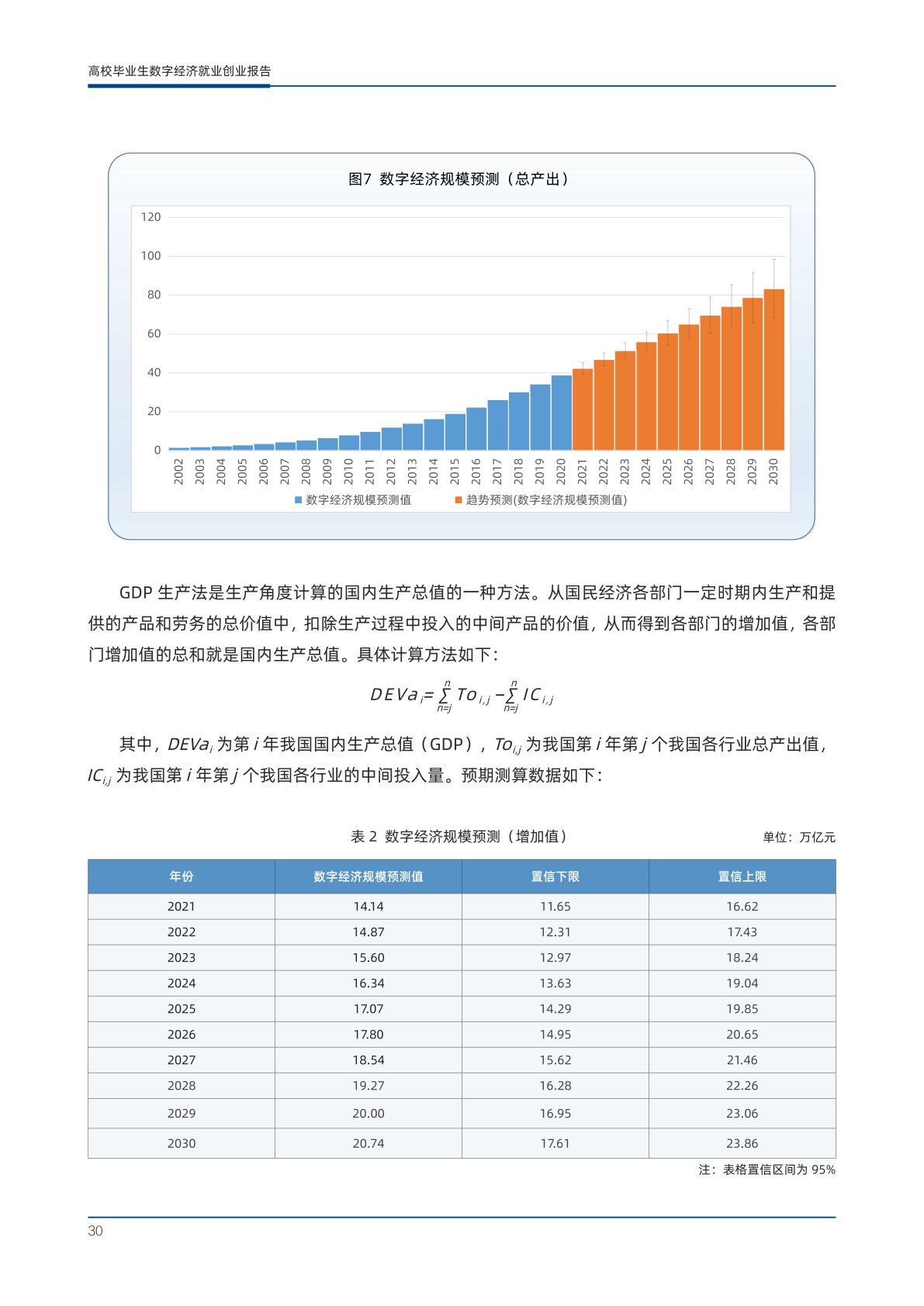 报告预测,到2030年,数字经济将带动就业人数达4.49亿,为高校毕业生提供就业岗位2834.98万个,与2021年相比预计增加1200多万。数字经济将阶段性成长为新就业岗位的“孵化器”和“蓄水池”,“平台型就业”,“生态圈就业”逐步成型。