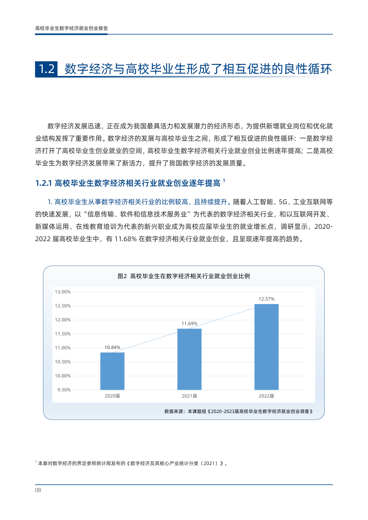 2020-2023届高校毕业生中有11.68%在数字经济相关行业就业创业,这意味着高校毕业生每10人中,就有1人进入数字经济领域就业创业,且占比将逐年提高,就业创业总体满意度达88.17%。