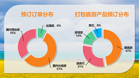 随着气温的不断回暖,用户出游热情水涨船高。途牛用户预订2月下旬至3月中旬出游的订单持续增长,其中,国内长线游订单占比为57%,周边游订单占比为35%,出境游订单占比为8%。不计算单独预订机票、酒店的出游需求,仅统计打包旅游产品的预订中,跟团游保持了较高的热度,订单占比为47%,其次是自由行以及自驾游,订单占比分别为31%和14%。