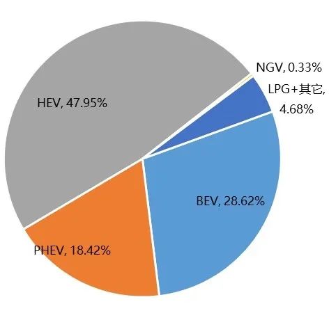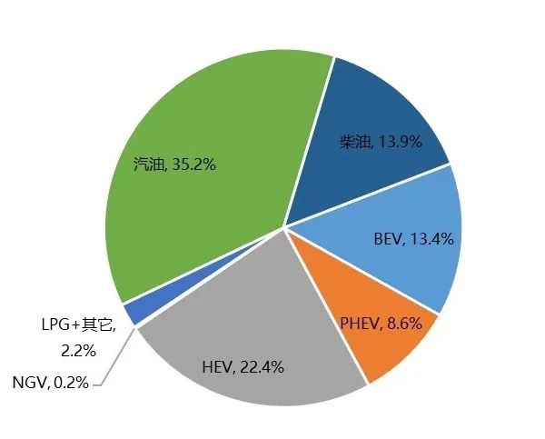 图4 2022年欧洲替代动力乘用车不同动力系统车辆注册量占比
