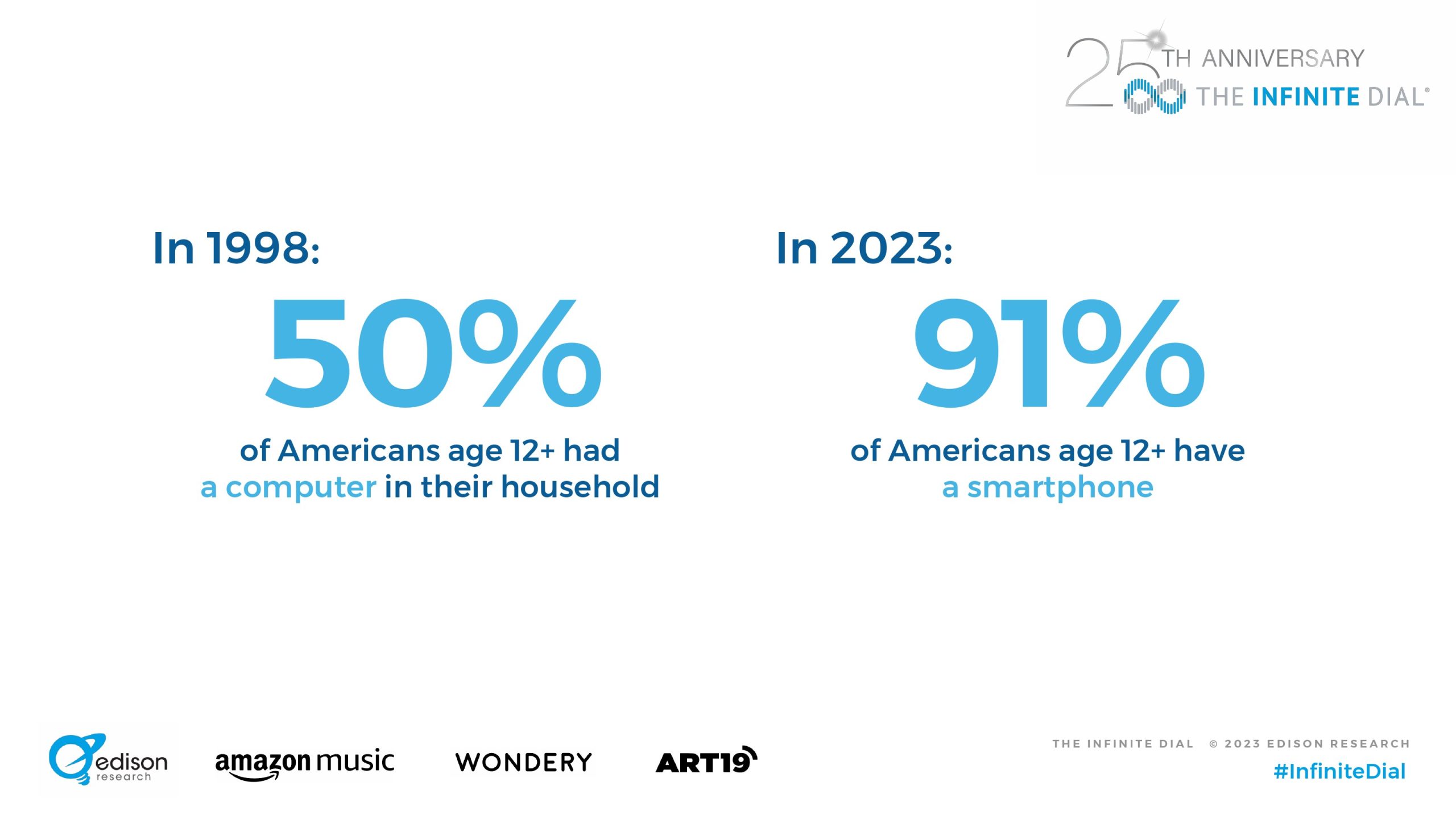 在这份最新的年度报告中,播客熟悉度(83%,高于79%)和曾听过播客的受访者(64%,高于62%)的比例均创下新高。