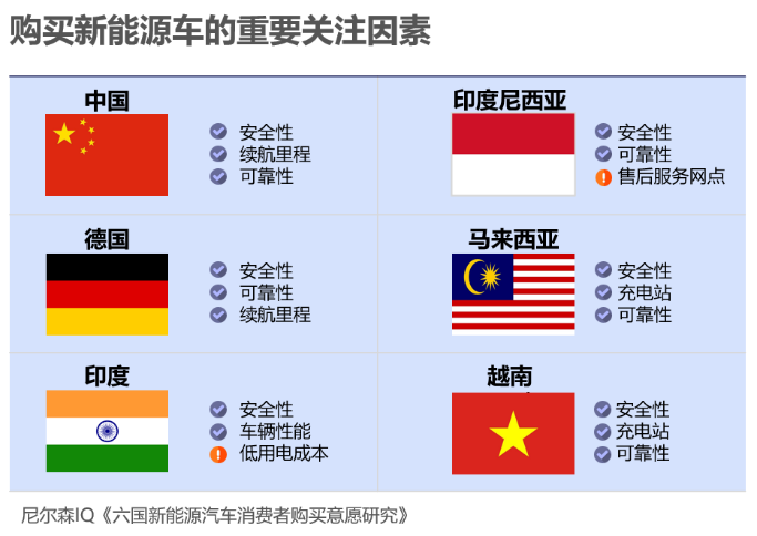 调研结果显示,所有六个国家中,超过三分之一(37%)的消费者表示更愿意购买新能源车作为下一辆车,但仍有44%的消费者持观望态度,大规模推广新能源汽车需要持续发力。另外,有20%的消费者表示拒绝购买新能源汽车。