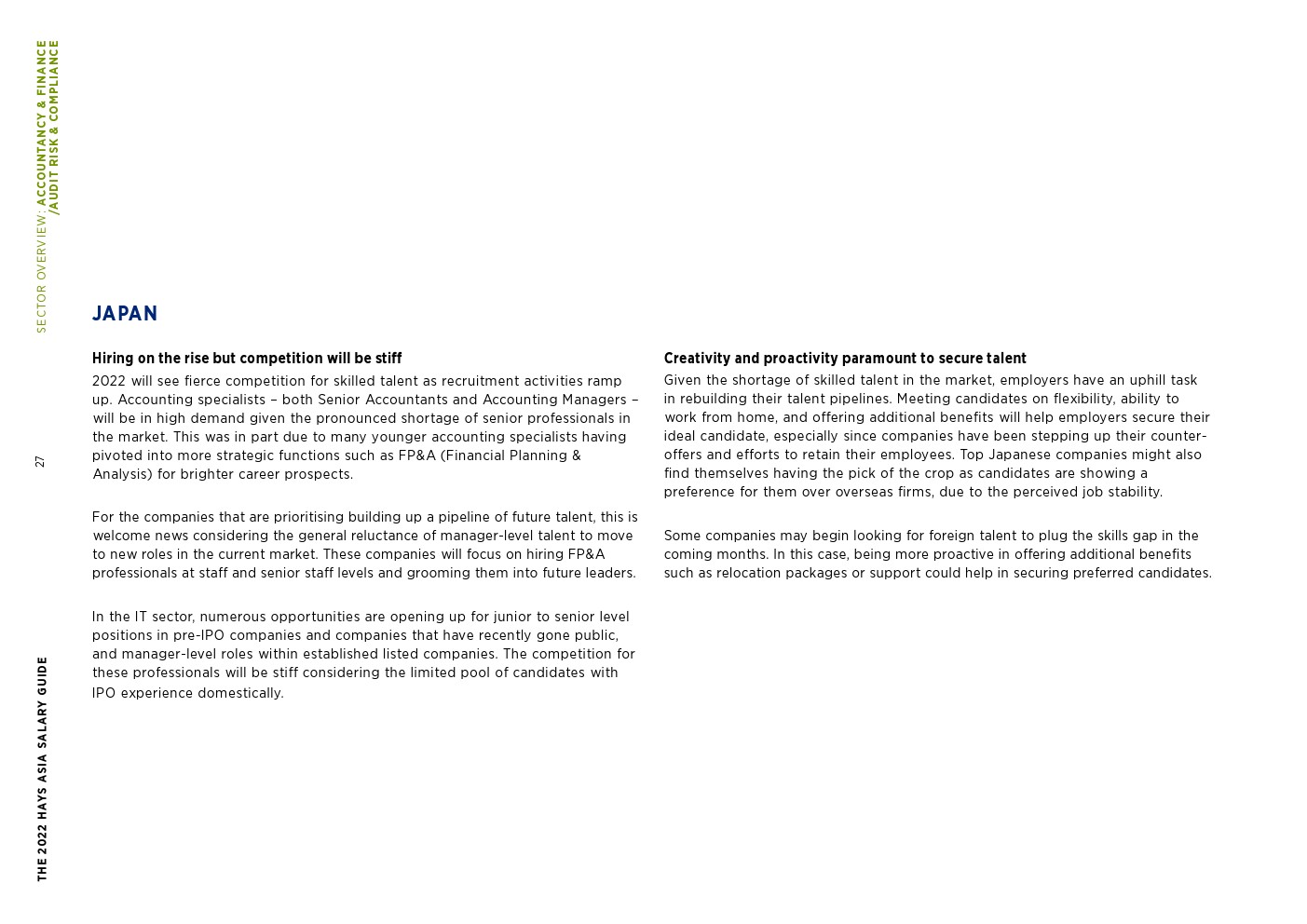 Hays发布了“2023年亚洲薪资指南”。尽管持续受到干扰,但由于企业和个人适应速度快于预期,2021年全球和亚洲出现了出人意料的强劲反弹。经济继续蓬勃发展,就业市场重新焕发活力。人们开始关注灵活性和幸福感,有勇气重新评估工作和个人生活之间的平衡。然而,在一些行业观察到的技能短缺可能会阻碍这种快速恢复增长。