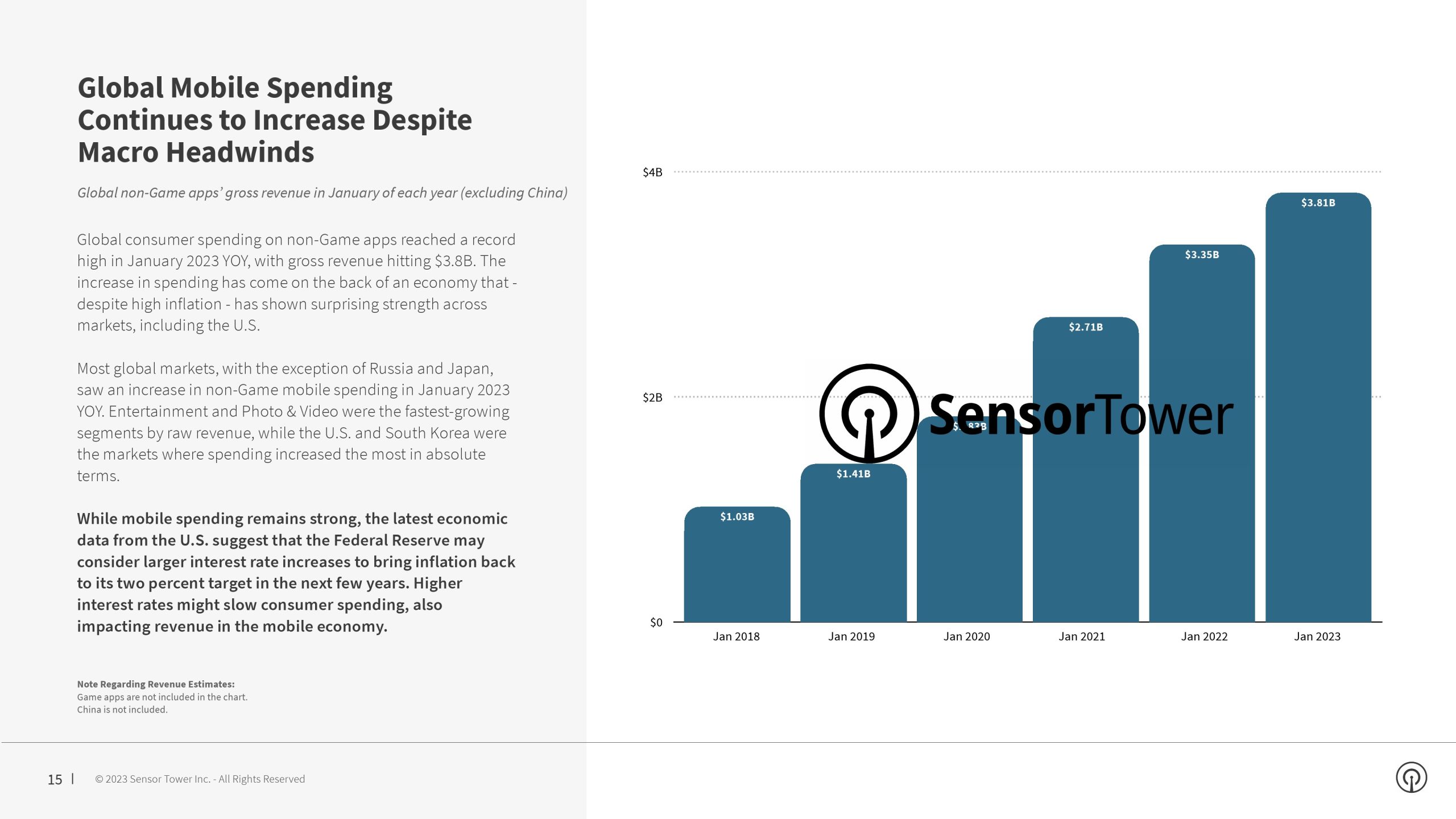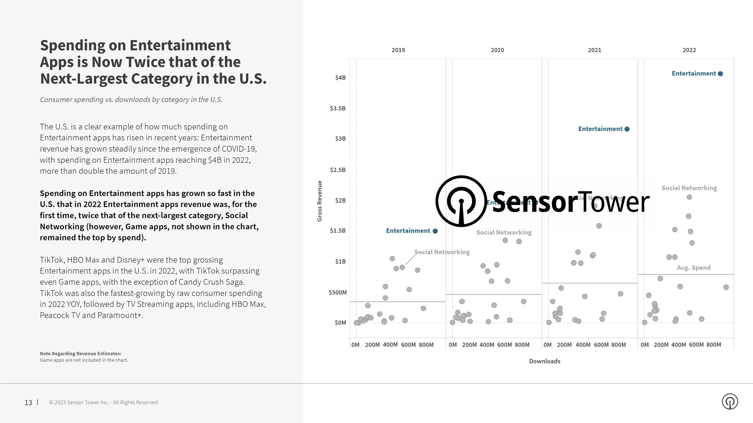 2023年初,娱乐应用程序继续推动全球支出增长