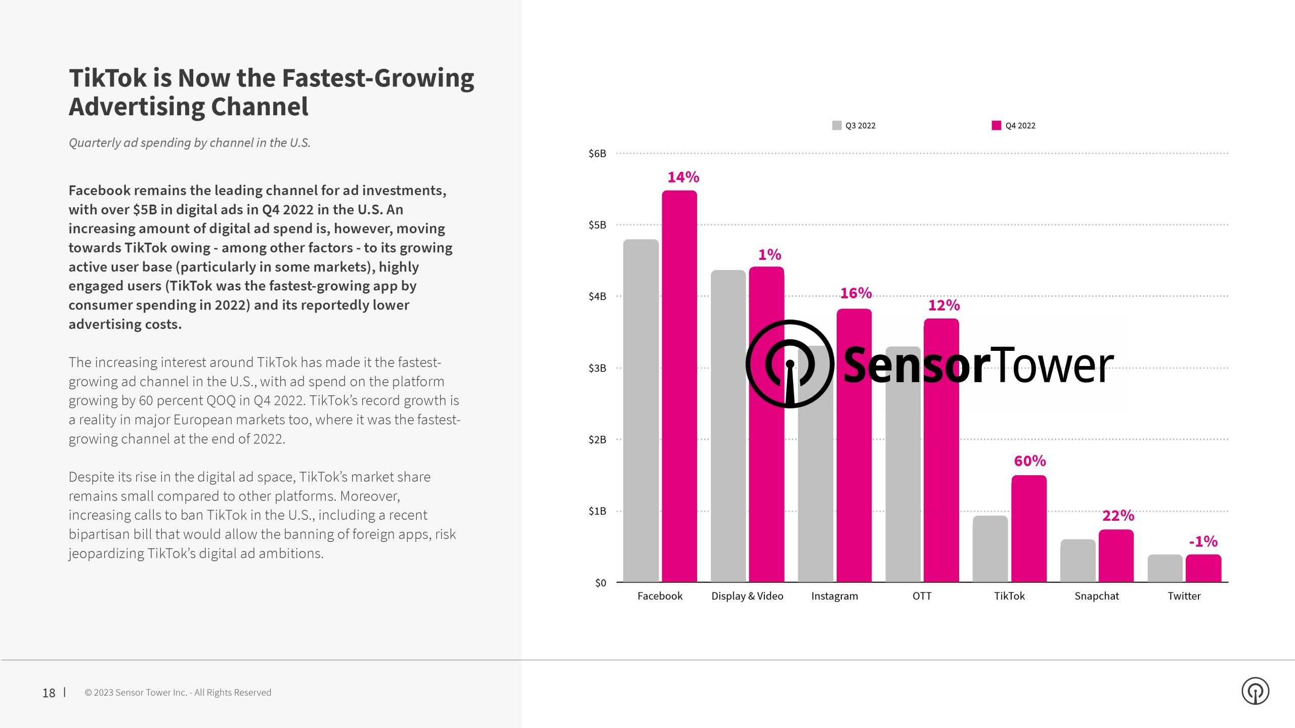 在通货膨胀加剧之际,作为对苹果反跟踪规则的回应,各品牌削减了在数字广告上的投资,但TikTok正在挑战现状,该应用程序成为北美和欧洲主要市场增长最快的广告渠道。