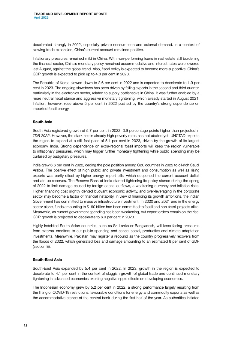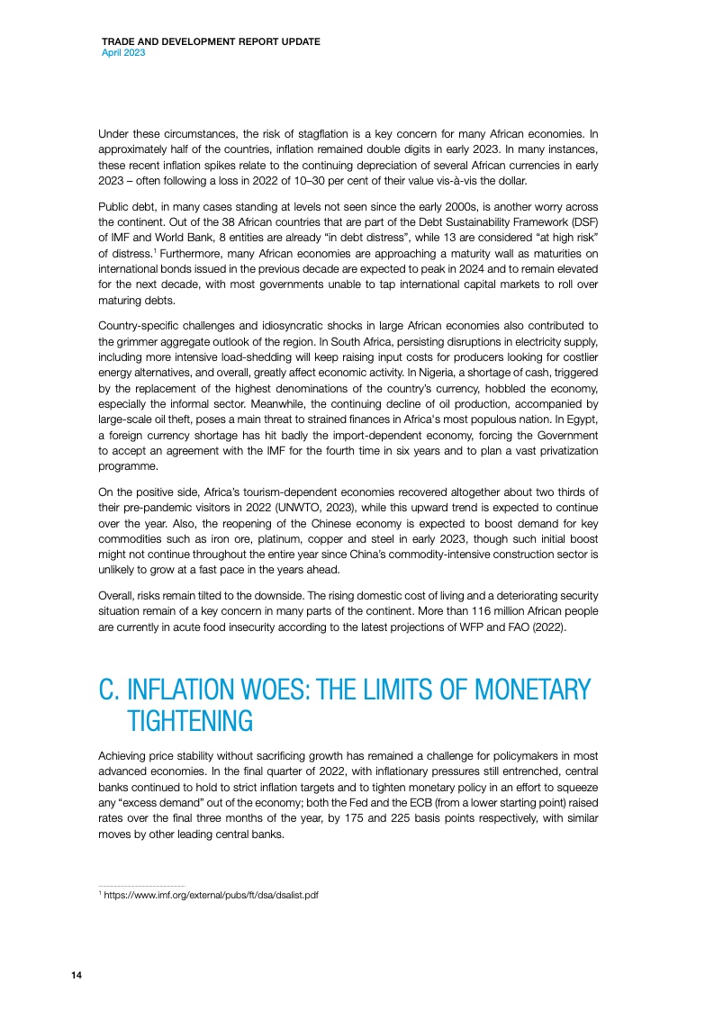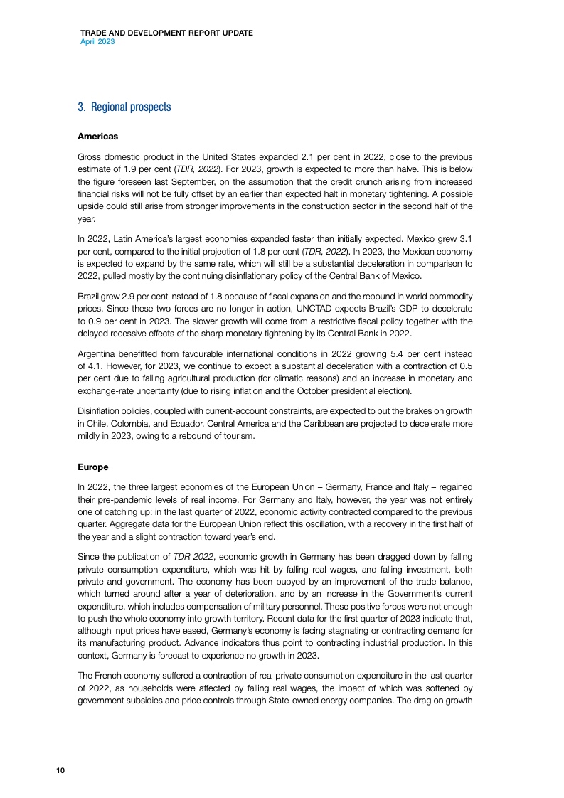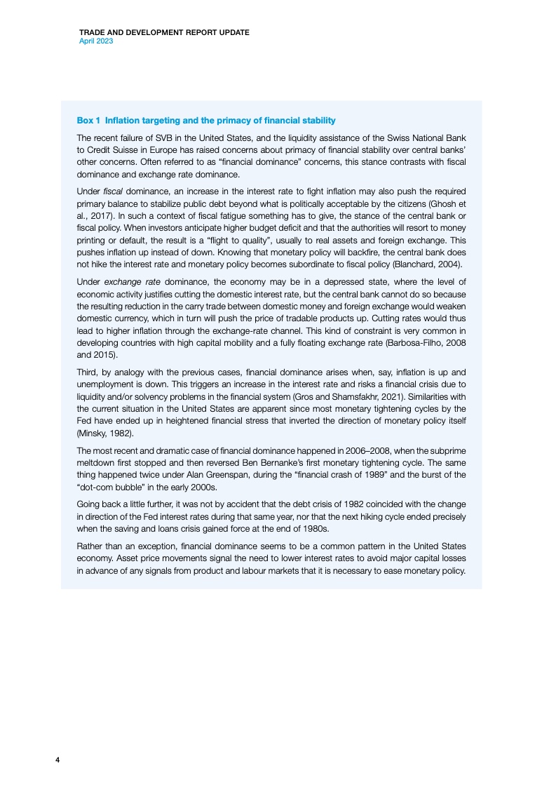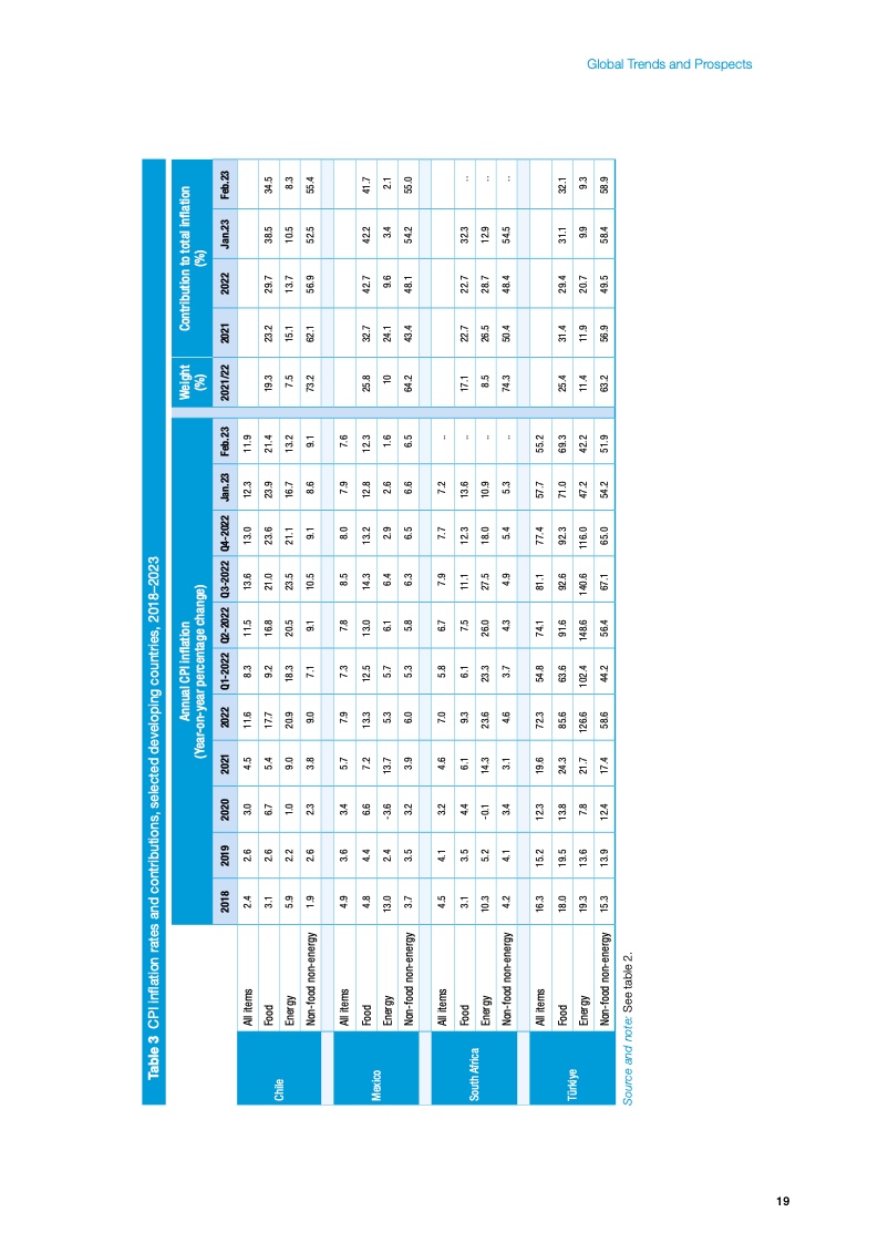 贸发会议还估计,加息将使得发展中国家在未来几年中损失超过8000亿美元的收入。假设更高利率的金融后果仅限于第一季度的银行挤兑和救助行动,2023年全球经济增长将跌至2.1%。