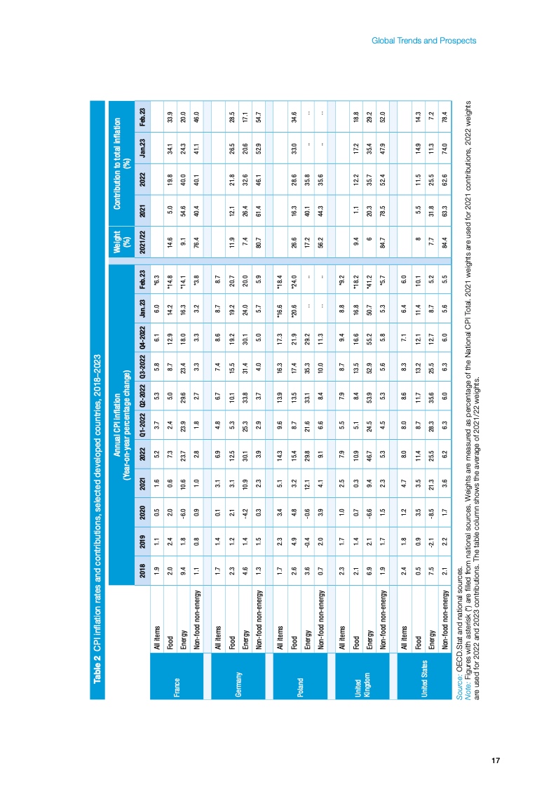 而在财政支持减少的情况下,更高的利率以及能源和食品价格高企会共同产生影响,预计将进一步削弱家庭支出,包括住房支出。受金融动荡冲击,商业投资预计也会进一步放缓或收缩。