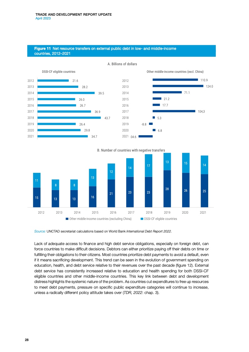 贸发会议强调,债务困境将导致发展危机和不平等问题扩大,目前39个发展中国家向其外部公共债权人支付的款项已经超过了获得的新贷款,从而对公共投资和社保带来了负面影响。
