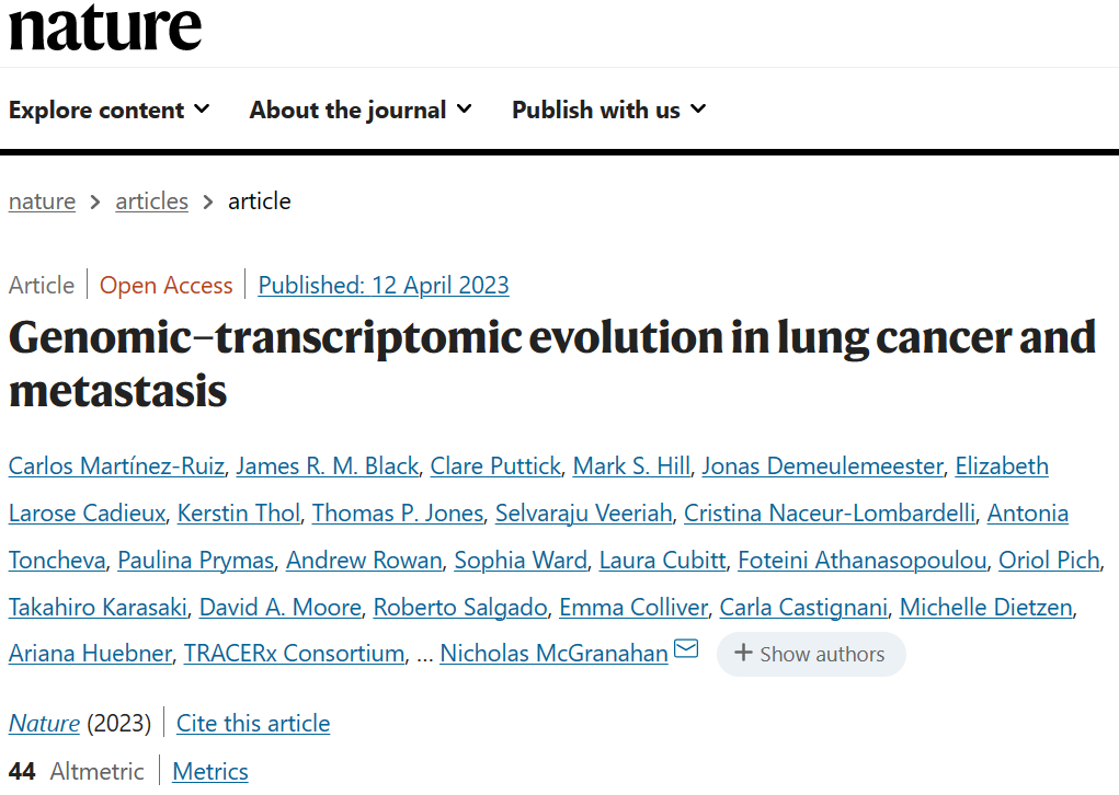 [3]Martínez-Ruiz, C., Black, J.R.M., Puttick, C. et al. Genomic–transcriptomic evolution in lung cancer and metastasis. Nature (2023). https://doi.org/10.1038/s41586-023-05706-4