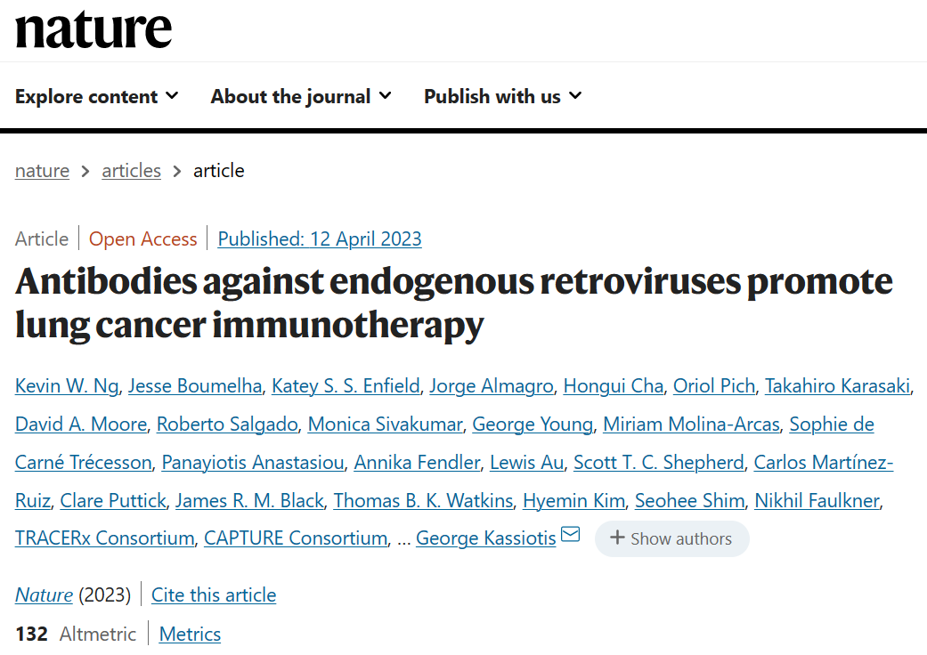 [4]Ng, K.W., Boumelha, J., Enfield, K.S.S. et al. Antibodies against endogenous retroviruses promote lung cancer immunotherapy. Nature (2023). https://doi.org/10.1038/s41586-023-05771-9