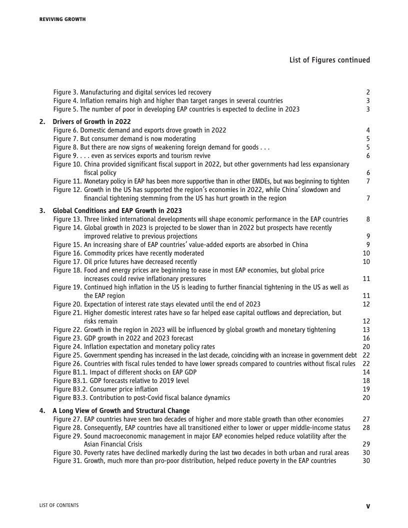 预计东亚太平洋地区发展中经济体2023年的增速将从2022年的3.5%加快至5.1%,因为中国的重新开放有助于经济从去年的3%回弹至5.1%。由于一些国家的通胀和居民负债率上升对消费造成压力,预计除中国以外的地区增长将从2022年疫后强劲反弹的5.8%放缓至 4.9%。