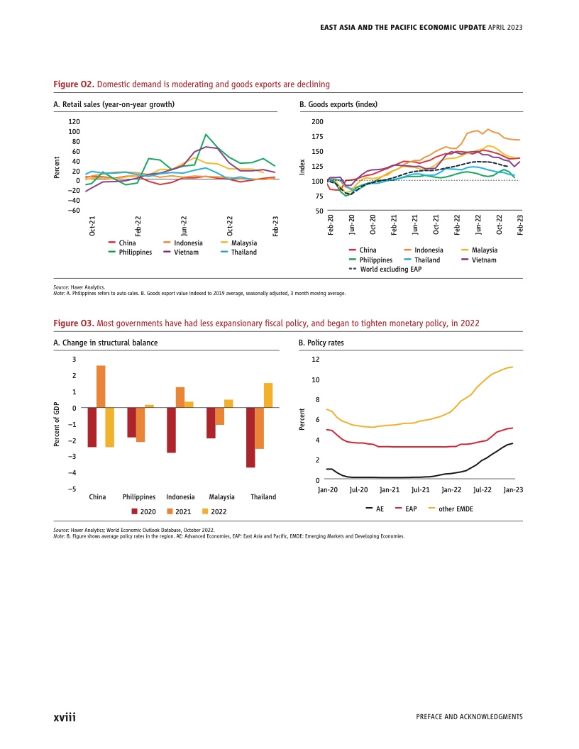 在该地区的较大型经济体中,预计包括印度尼西亚、菲律宾和越南在内的大多数经济体在2023年的增速将比2022年有所放缓。预计大多数太平洋岛国将在2023年加快增长,但斐济在2022年异常强劲的经济增速有可能放缓。