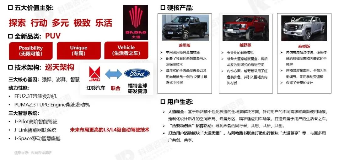 3月20日,江铃皮卡全新品牌“江铃大道”(以下简称大道)在北京正式发布,与此同时,全新技术架构平台、全新皮卡产品也同步亮相。大道以前瞻的品牌理念、先进的技术架构和硬核产品,为皮卡市场带来全新发展风潮,全面引领皮卡全场景时代。