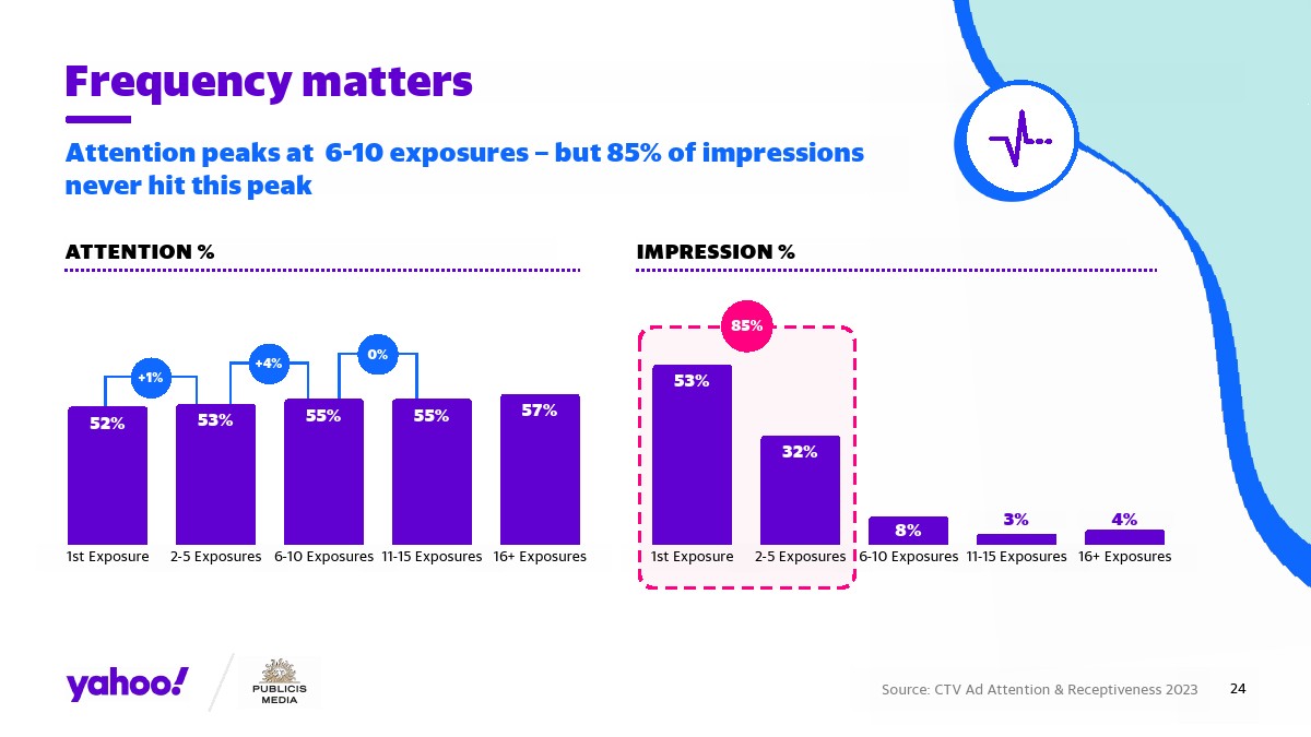 - 广告关注的理想频率是曝光 6-10 次,曝光间隔 12-24 小时。