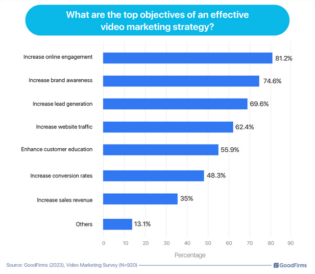 81.2% 的受访营销人员表示,增加与观众的在线互动是视频营销策略的首要目标。