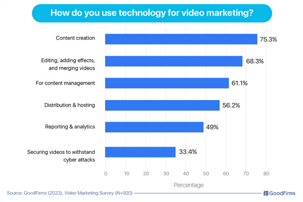 75.3% 的受访者使用各种技术为营销视频创建内容。