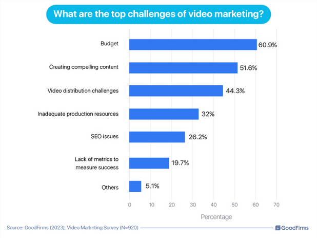 60.9% 的受访者认为预算不足是他们视频营销策略面临的主要挑战。