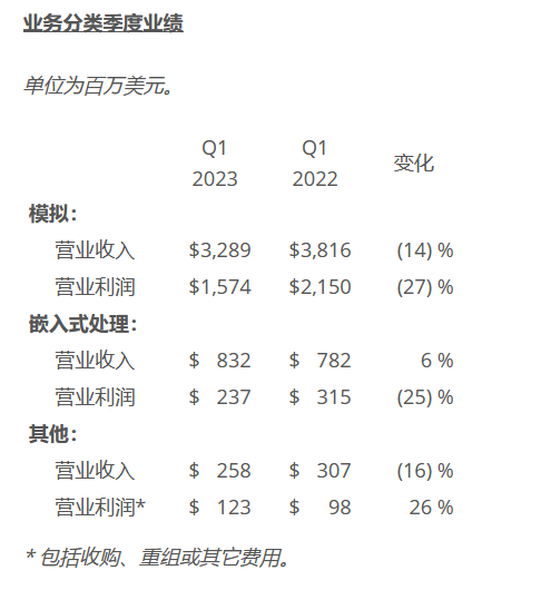 ・“收入环比下降 6%,比去年同期下降 11%。正如预期,在本季度我们除汽车以外所有终端市场都出现了需求疲软。