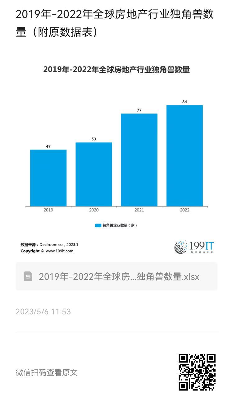 2019年-2022年全球房地产行业独角兽数量(附原数据表) ​​​