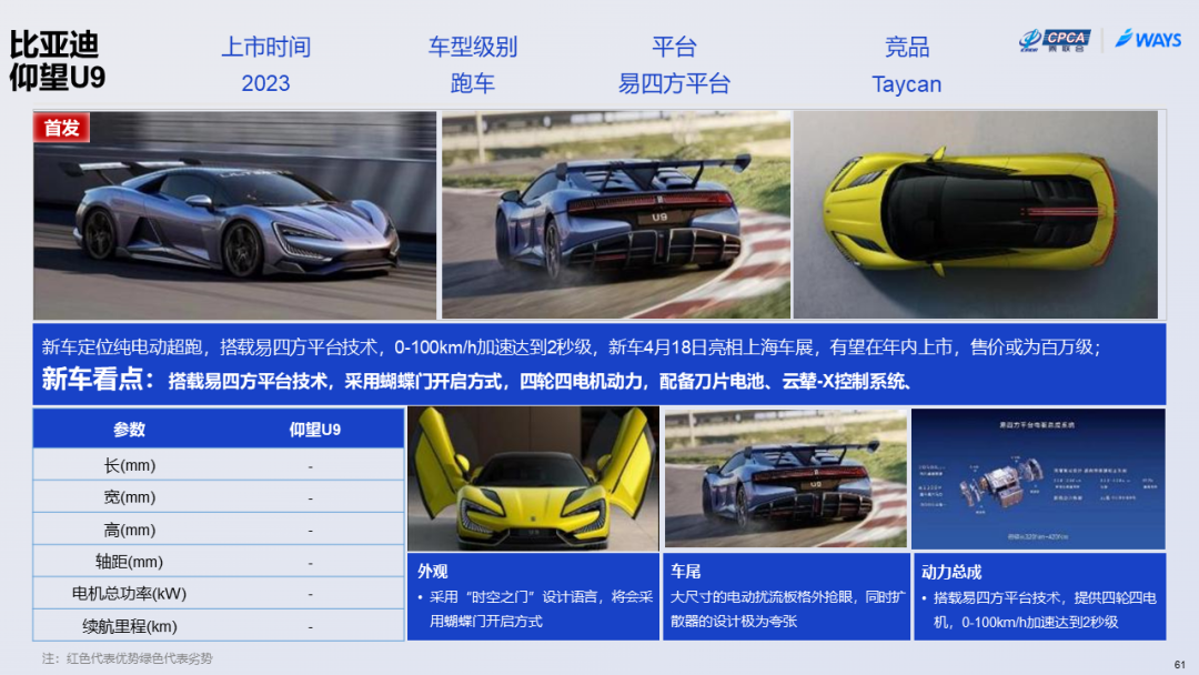 乘联会&威尔森:2023年上海车展展后报告(简约版) 中国汽车流通协会汽车市场研究分会(乘用车市场信息联席会,简称乘联会)与广州威尔森信息科技有限公司(简称威尔森)联合发布“2023年上海车展展后报告”(本篇内容为简约版),旨在通过报告全方位了解国内汽车产业前沿技术和发展趋势。 上海车展参展车型多达298款,全新车型达141款;传统燃油车型114款,新能源车型172款,其中纯电车型占比最高。本届车展SUV车型占主要地位,多达170款,主要集中在A级SUV至C级SUV区间;自主品牌强势发力,参展车型达到123款。 更多阅读:乘联会&威尔森:2023年3月OTA汽车行业监测月报乘联会&威尔森:2023年8月汽车OTA监测月报乘联会&威尔森:2023年2月OTA(空中下载技术)监测月报乘联会&威尔森:2023年6月OTA监测月报乘联会&威尔森:2019年7月狭义乘用车市场批发量预测回顾威尔森&乘联会:2022年10月新能源汽车行业月报汇调研:透过车展看车市-济南篇2019上海车展百度风向标乘联分会&威尔森:2024年5月OTA监测月报威尔森:2017年新能源车增长动力分析威尔森:2022年8月新能源汽车行业月报威尔森:2024年4月新能源汽车行业月报威尔森:2019年6月新能源汽车行业月报威尔森:2023年7月新能源汽车行业月报威尔森:2023年6月新能源汽车行业月报