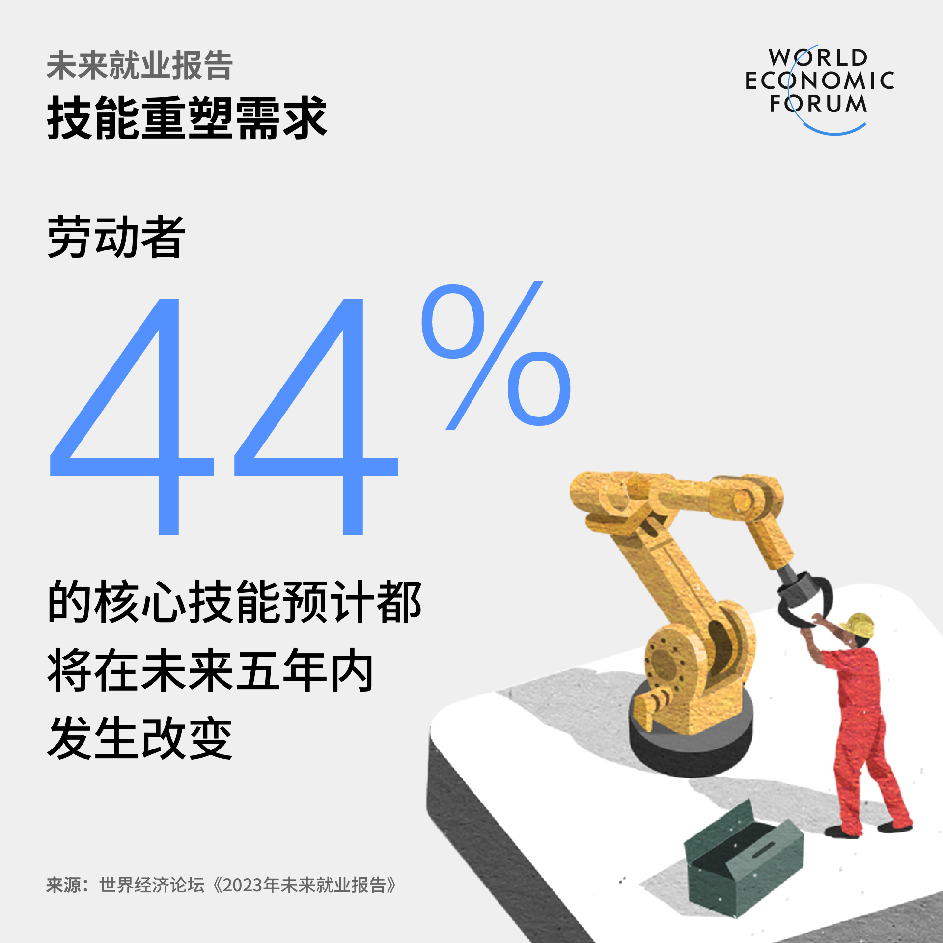 从现在到2027年,预计劳动者44%的核心技能都将被颠覆,因为技术的发展速度已经超过了企业设计和扩大培训计划的速度。